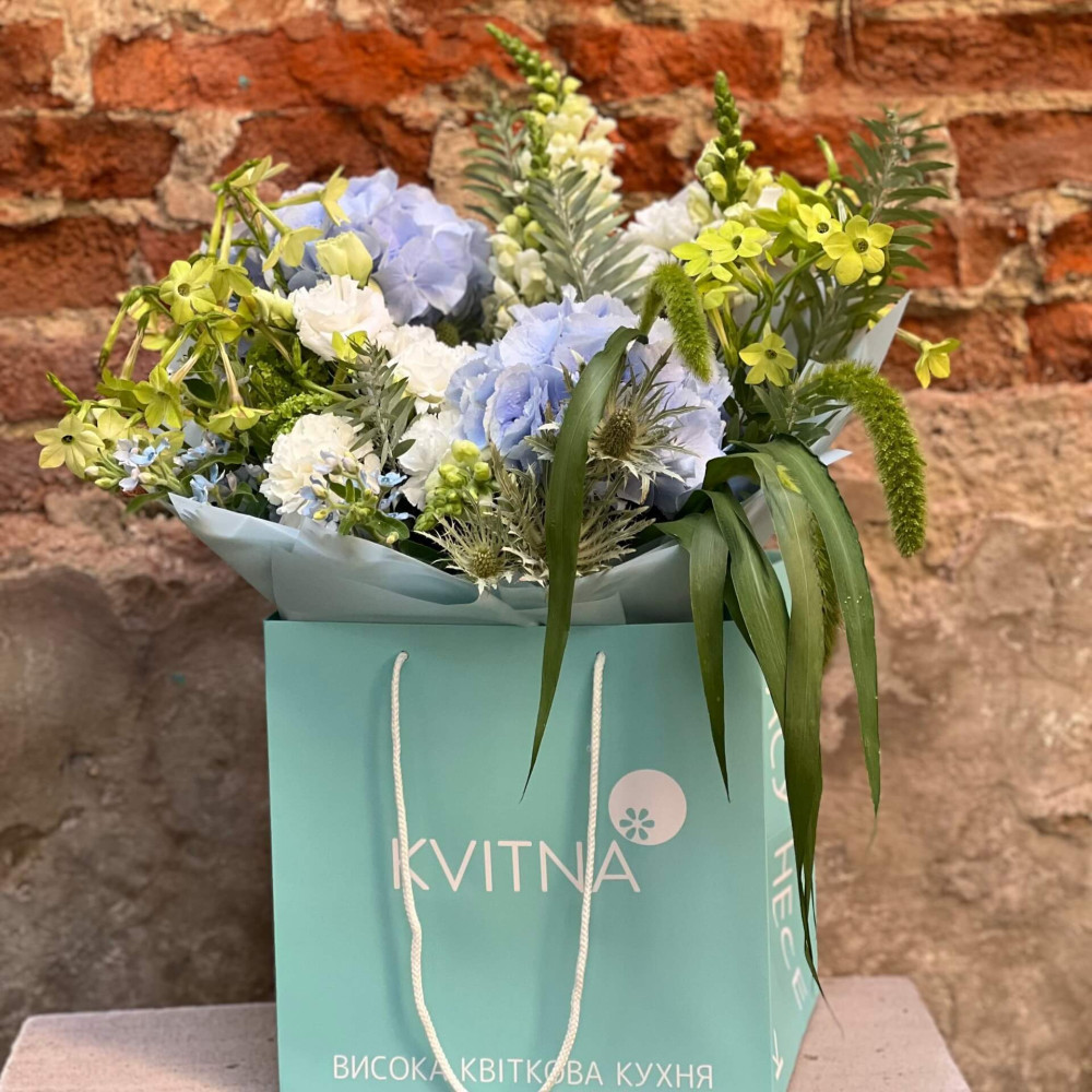 - Букеты от Kvitna доставляются в фирменной упаковке, которую нужно снять при установке цветов в вазу. Не срезайте ленту, связывающую букет, чтобы сохранить форму.