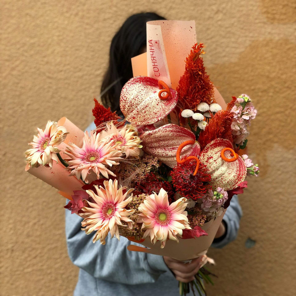 И это не обязательно плюсы, это особенности, которые нужно понимать. Тогда и выбор "где купить букет во Львове" - сделать будет значительно проще.- Каждый букет Kvitna - уникален. Это значит если Вы закажете у нас какой то из букетов на сайте - Вы не получите точно такой же. Некоторых это смущает, такие люди не хотят "рисковать", желают "в точности, как на картинке". У Квитна - каждый букет это творческий поиск, это увлечение, слияние с цветами, образом получателя и задачей. Да, мы можем принять за вектор, сделать похожий букет, в том же стиле, цветовой гамме, составу цветов... Но нам скучно делать по шаблону. Ведь букет, представленный на картинке - делался для другого человека, для другого повода, под другое настроение и вдохновение. У Вас будет все по-другому.