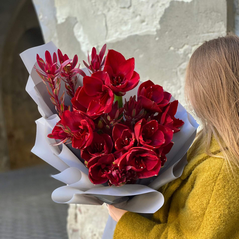 - Как заказать Букет из Амарилиса и Леукадендрона «Красная звезда»? ❯