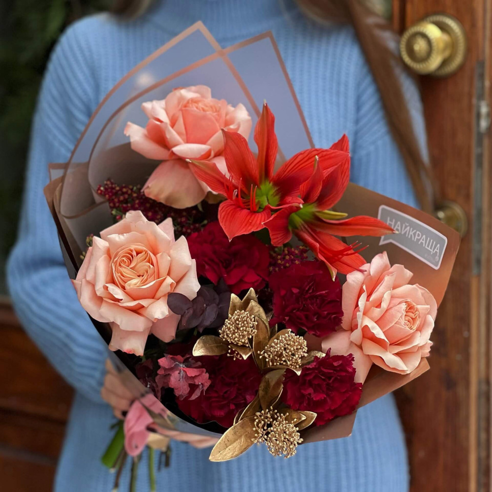 Залежно від сезонності і наявності квітів ми залишаємо за собою право змінювати склад букета без повідомлення замовника, зберігаючи при цьому авторський стиль, колірне рішення, концепцію букета. У разі, якщо необхідна заміна базової квітки, заміна відбувається з узгодженням із замовником. Якщо для Вас критично важлива присутність в складі певної квіточки – обов'язково зв'яжіться з нами та повідомте про це.