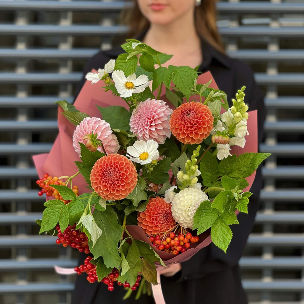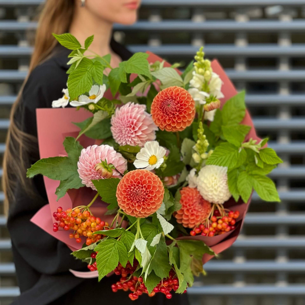 Цветы: Георгина, Космея, Малина (листья), Антирринум