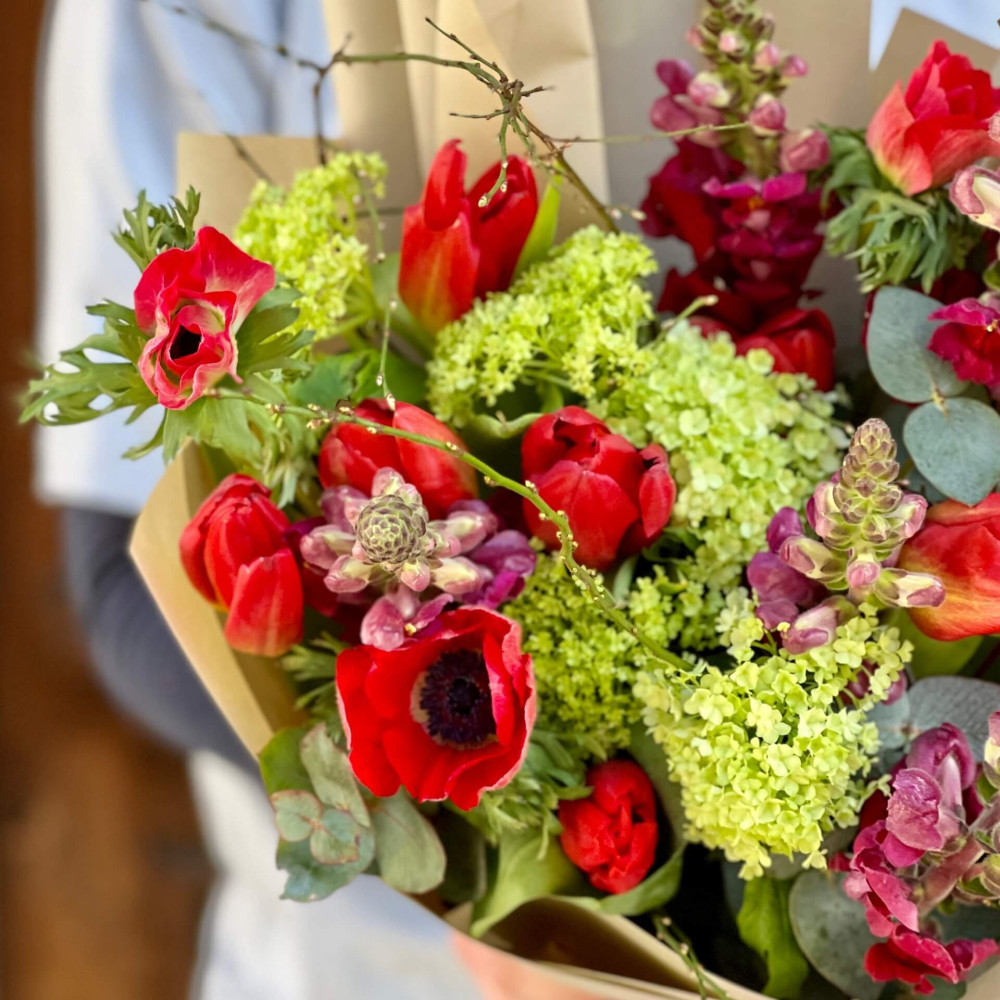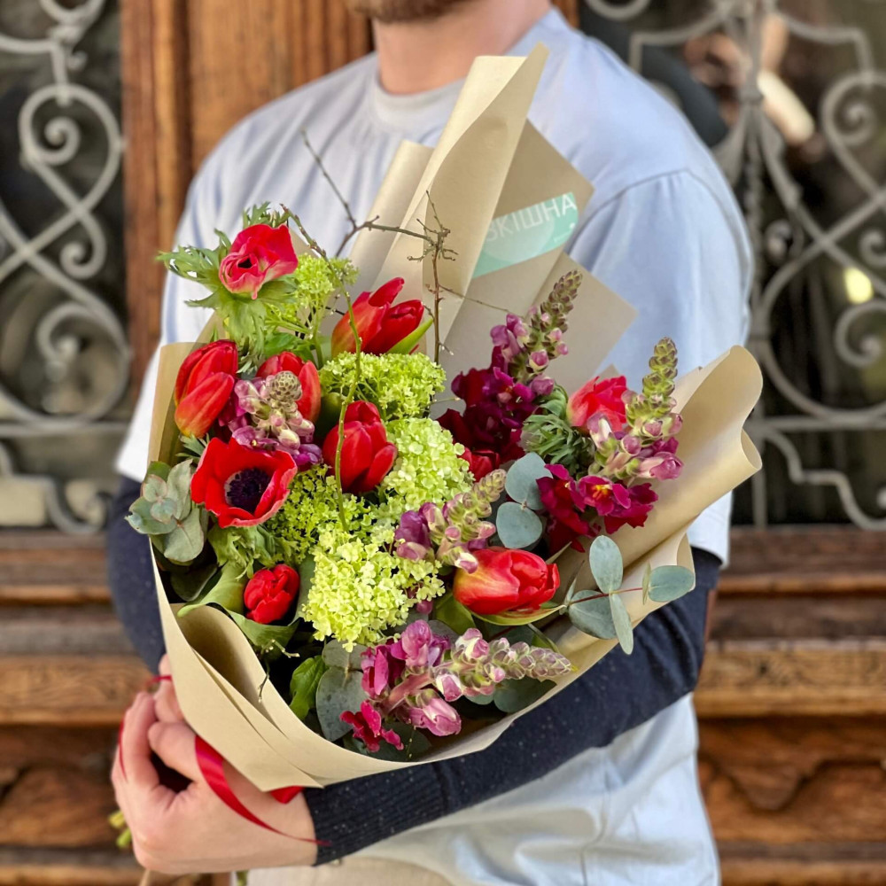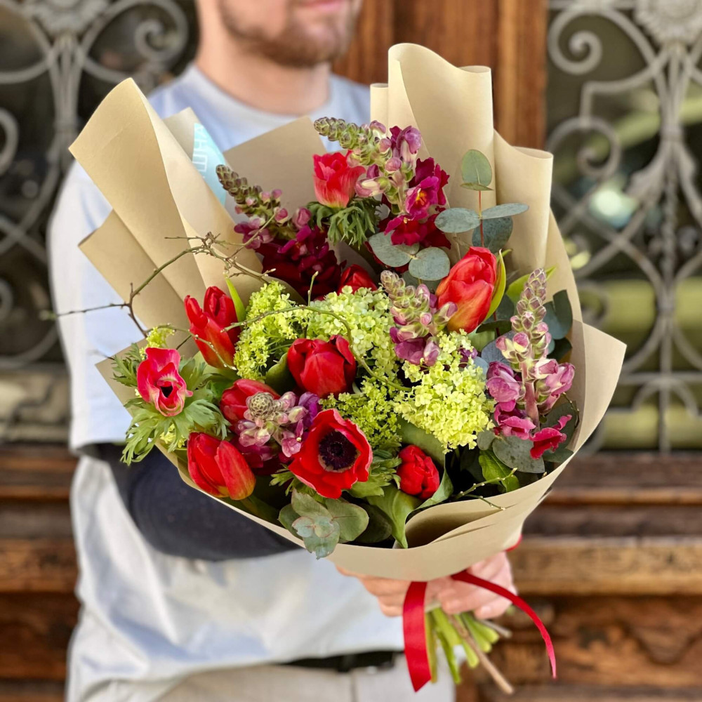 Цветы: Анемон, Тюльпан, Вибурнум, Эвкалипт, Антирринум