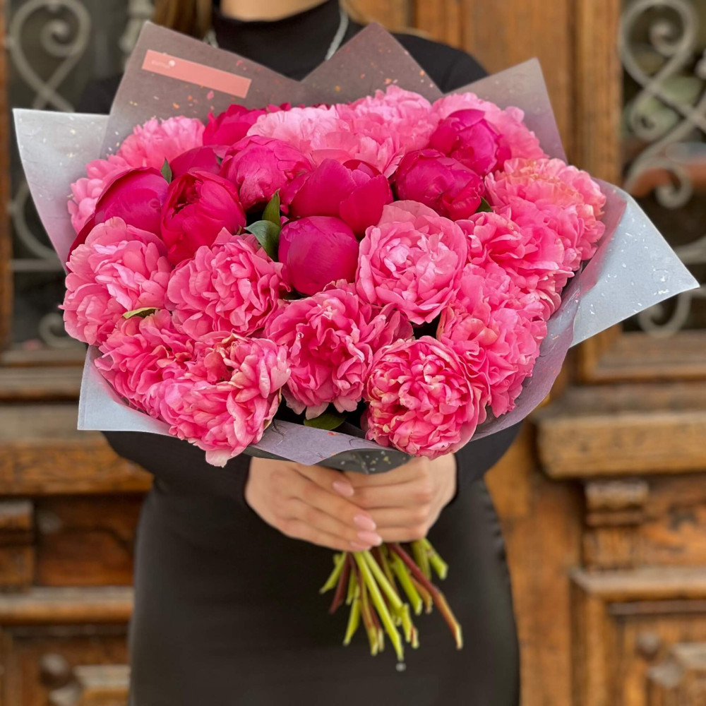 Пионы уже начинают свой сезон! Рекомендуем так же обратить внимание на пионовидные розы - они очень похожи на пионы, и доступны круглый год.