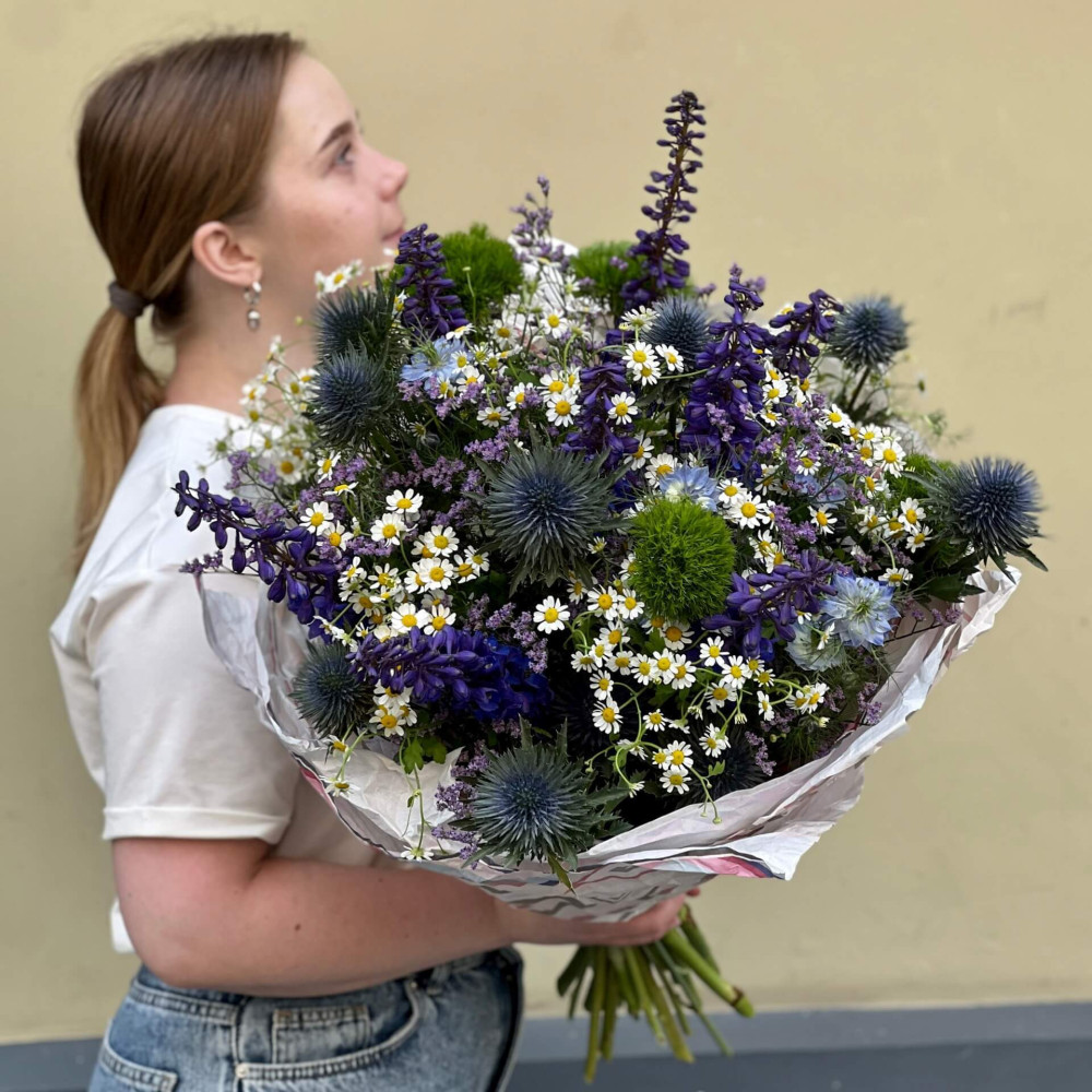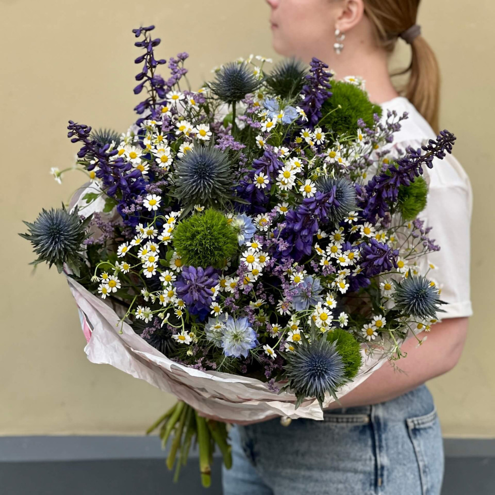 Цветы: Дельфиниум, Танацетум, Эрингиум, Нигелла, Кермек, Диантус