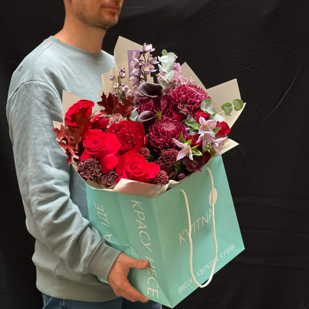 И это не обязательно плюсы, это особенности, которые нужно понимать. Тогда и выбор "где купить букет во Львове" - сделать будет значительно проще.- Каждый букет Kvitna - уникален. Это значит если Вы закажете у нас какой то из букетов на сайте - Вы не получите точно такой же. Некоторых это смущает, такие люди не хотят "рисковать", желают "в точности, как на картинке". У Квитна - каждый букет это творческий поиск, это увлечение, слияние с цветами, образом получателя и задачей. Да, мы можем принять за вектор, сделать похожий букет, в том же стиле, цветовой гамме, составу цветов... Но нам скучно делать по шаблону. Ведь букет, представленный на картинке - делался для другого человека, для другого повода, под другое настроение и вдохновение. У Вас будет все по-другому.