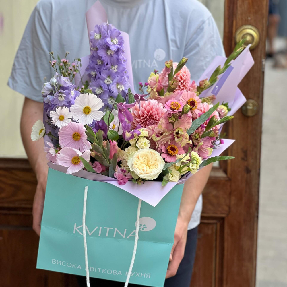 И это не обязательно плюсы, это особенности, которые нужно понимать. Тогда и выбор "где купить букет во Львове" - сделать будет значительно проще.- Каждый букет Kvitna - уникален. Это значит если Вы закажете у нас какой то из букетов на сайте - Вы не получите точно такой же. Некоторых это смущает, такие люди не хотят "рисковать", желают "в точности, как на картинке". У Квитна - каждый букет это творческий поиск, это увлечение, слияние с цветами, образом получателя и задачей. Да, мы можем принять за вектор, сделать похожий букет, в том же стиле, цветовой гамме, составу цветов... Но нам скучно делать по шаблону. Ведь букет, представленный на картинке - делался для другого человека, для другого повода, под другое настроение и вдохновение. У Вас будет все по-другому.