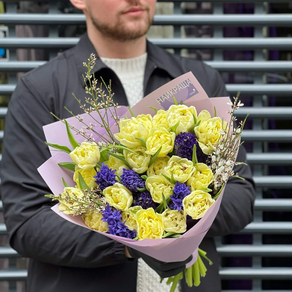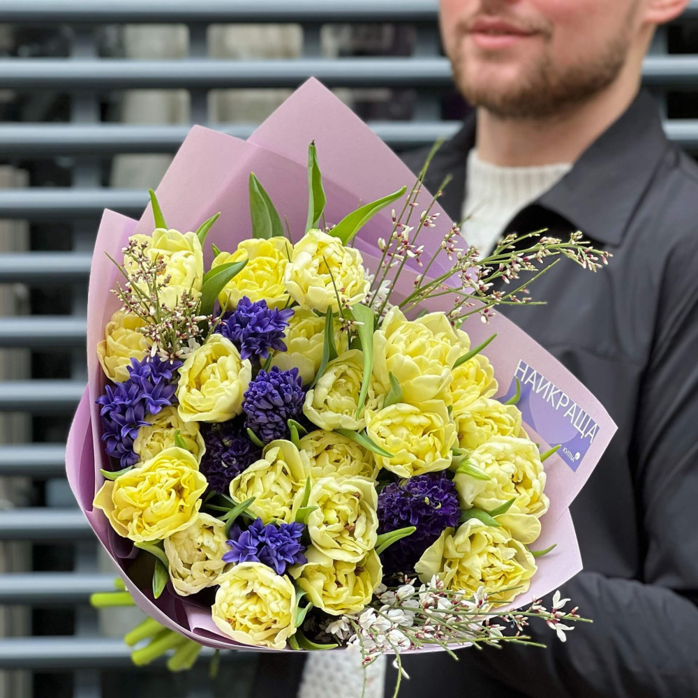 Цветы: Тюльпан пионовидный, Гиацинт, Гениста
