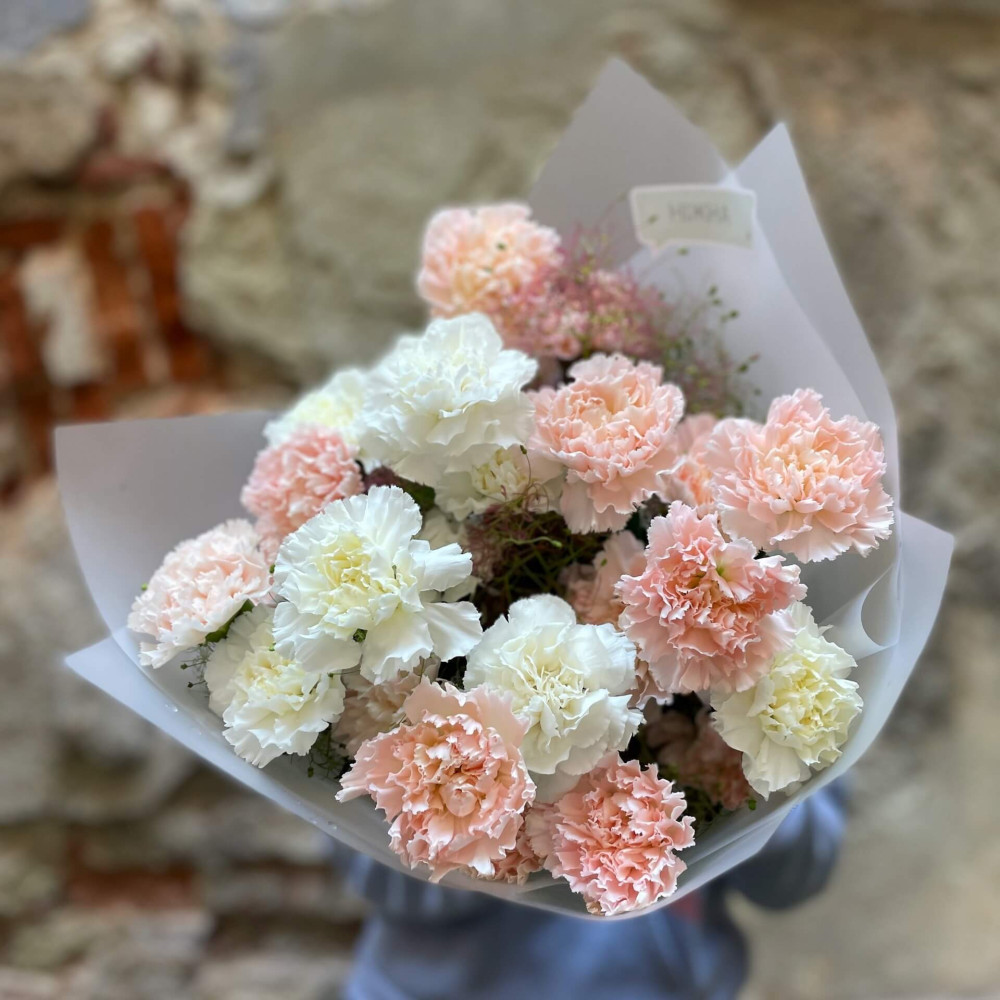 Вище наведено склад квітів, який був використаний при створенні букета, представленого на фото.