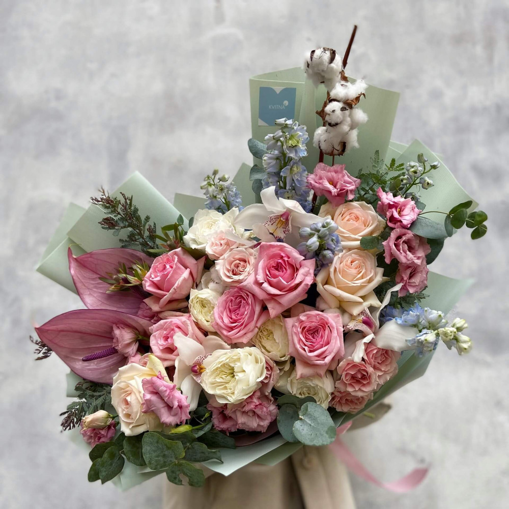 И это не обязательно плюсы, это особенности, которые нужно понимать. Тогда и выбор "где купить букет во Львове" - сделать будет значительно проще.- Каждый букет Kvitna - уникален. Это значит если Вы закажете у нас какой то из букетов на сайте - Вы не получите точно такой же. Некоторых это смущает, такие люди не хотят "рисковать", желают "в точности, как на картинке". У Квитна - каждый букет это творческий поиск, это увлечение, слияние с цветами, образом получателя и задачей. Да, мы можем принять за вектор, сделать похожий букет, в том же стиле, цветовой гамме, составу цветов... Но нам скучно делать по шаблону. Ведь букет, представленный на картинке - делался для другого человека, для другого повода, под другое настроение и вдохновение. У Вас будет все по-другому.