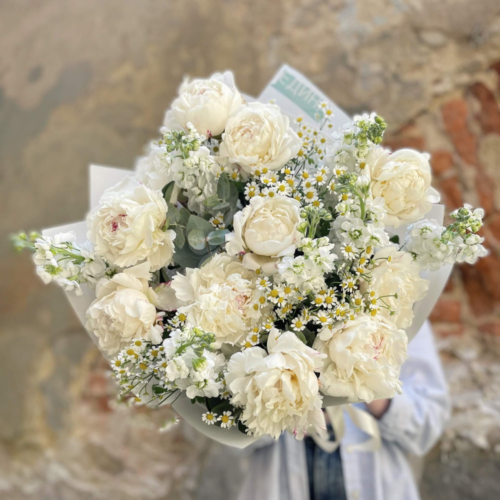 Цветы: Пион, Маттиола, Танацетум, Эвкалипт