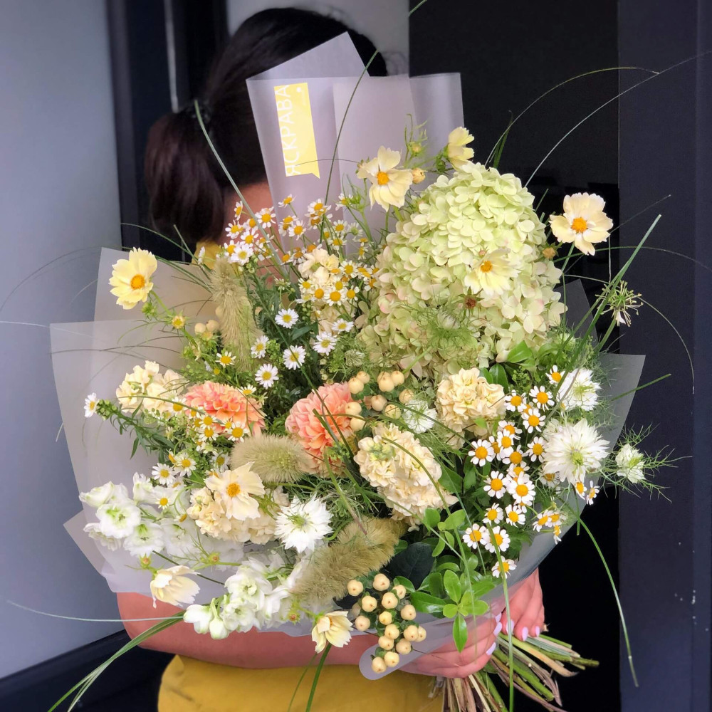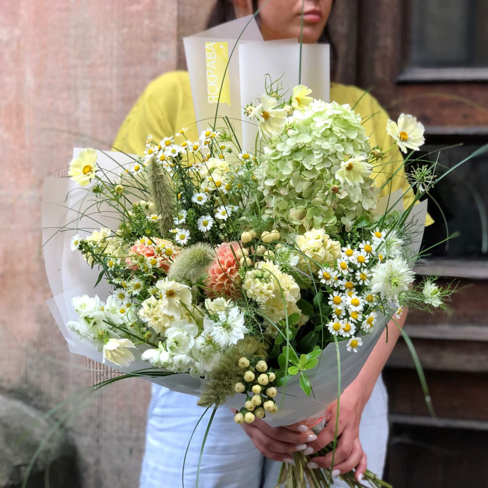 Залежно від сезонності і наявності квітів ми залишаємо за собою право змінювати склад букета без повідомлення замовника, зберігаючи при цьому авторський стиль, колірне рішення, концепцію букета. У разі, якщо необхідна заміна базової квітки, заміна відбувається з узгодженням із замовником. Якщо для Вас критично важлива присутність в складі певної квіточки – обов'язково зв'яжіться з нами та повідомте про це.