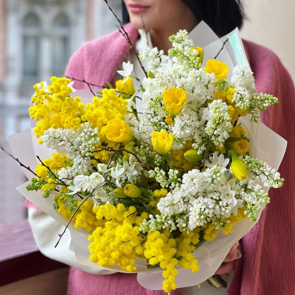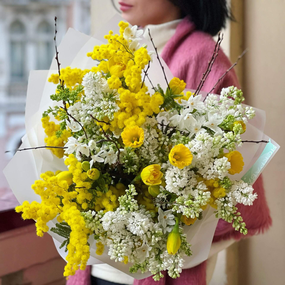 Цветы: Мимоза, Сирень, Нарцисс, Прунус