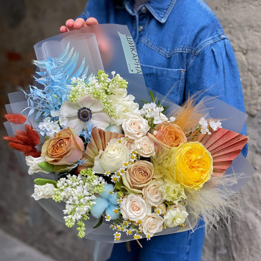 Залежно від сезонності і наявності квітів ми залишаємо за собою право змінювати склад букета без повідомлення замовника, зберігаючи при цьому авторський стиль, колірне рішення, концепцію букета. У разі, якщо необхідна заміна базової квітки, заміна відбувається з узгодженням із замовником. Якщо для Вас критично важлива присутність в складі певної квіточки – обов'язково зв'яжіться з нами та повідомте про це.
