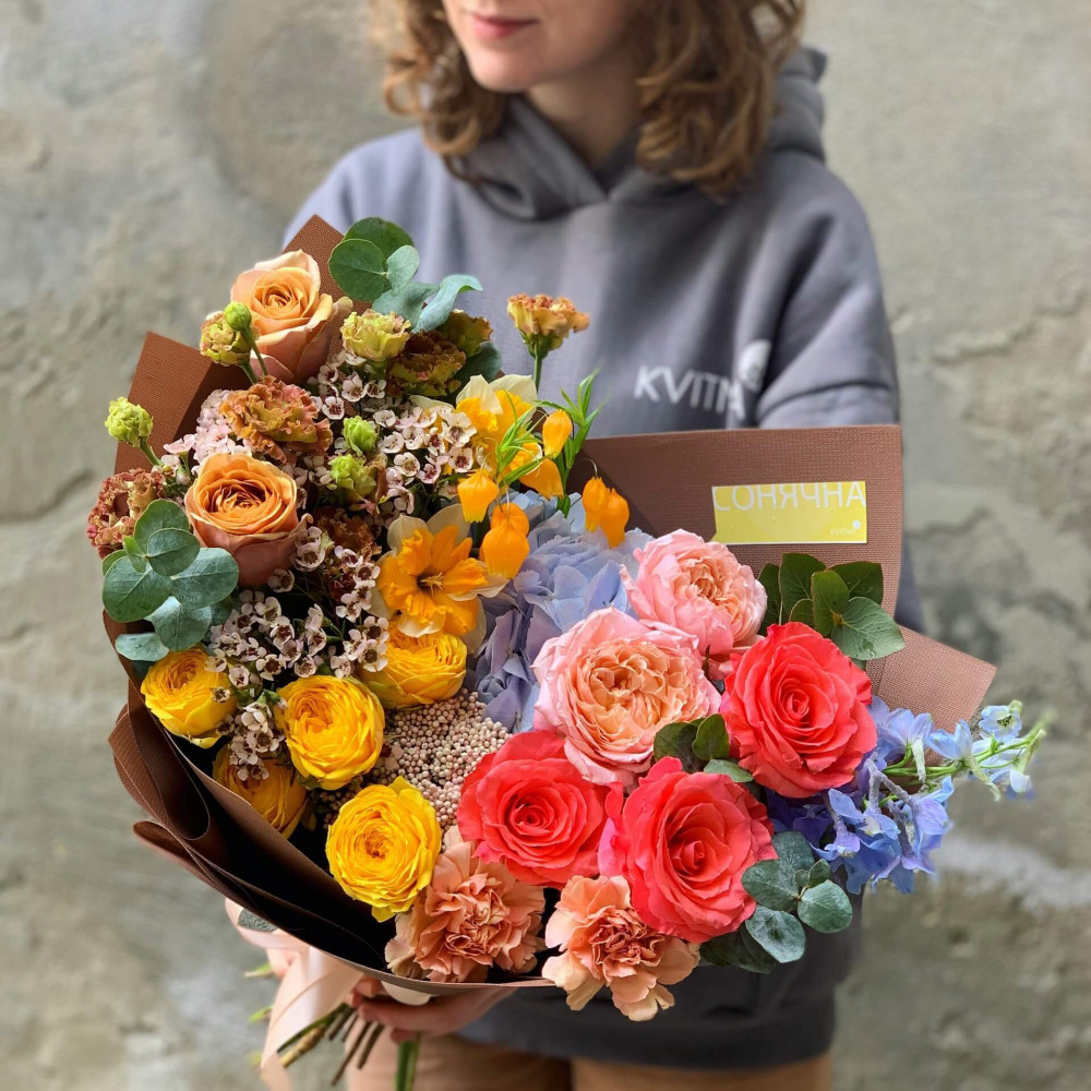 И это не обязательно плюсы, это особенности, которые нужно понимать. Тогда и выбор "где купить букет во Львове" - сделать будет значительно проще.- Каждый букет Kvitna - уникален. Это значит если Вы закажете у нас какой то из букетов на сайте - Вы не получите точно такой же. Некоторых это смущает, такие люди не хотят "рисковать", желают "в точности, как на картинке". У Квитна - каждый букет это творческий поиск, это увлечение, слияние с цветами, образом получателя и задачей. Да, мы можем принять за вектор, сделать похожий букет, в том же стиле, цветовой гамме, составу цветов... Но нам скучно делать по шаблону. Ведь букет, представленный на картинке - делался для другого человека, для другого повода, под другое настроение и вдохновение. У Вас будет все по-другому.