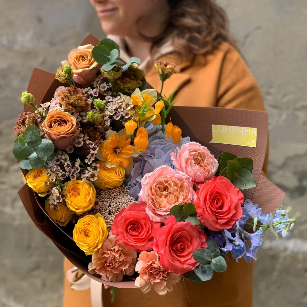 Залежно від сезонності і наявності квітів ми залишаємо за собою право змінювати склад букета без повідомлення замовника, зберігаючи при цьому авторський стиль, колірне рішення, концепцію букета. У разі, якщо необхідна заміна базової квітки, заміна відбувається з узгодженням із замовником. Якщо для Вас критично важлива присутність в складі певної квіточки – обов'язково зв'яжіться з нами та повідомте про це.