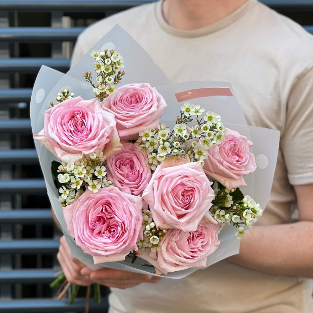 - Букеты от Kvitna доставляются в фирменной упаковке, которую нужно снять при установке цветов в вазу. Не срезайте ленту, связывающую букет, чтобы сохранить форму.