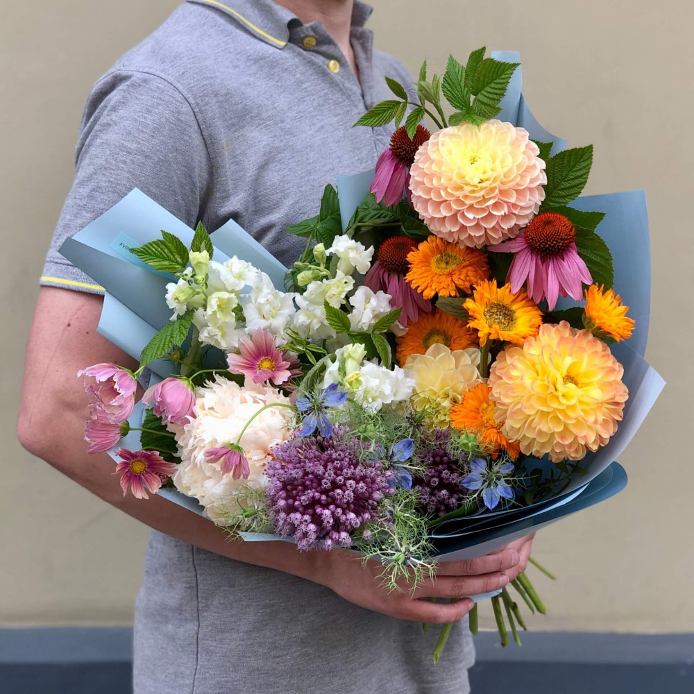 Цветы: Георгина, Пион, Нигелла, Космея, Аллиум, Антирринум, Малина (листья)