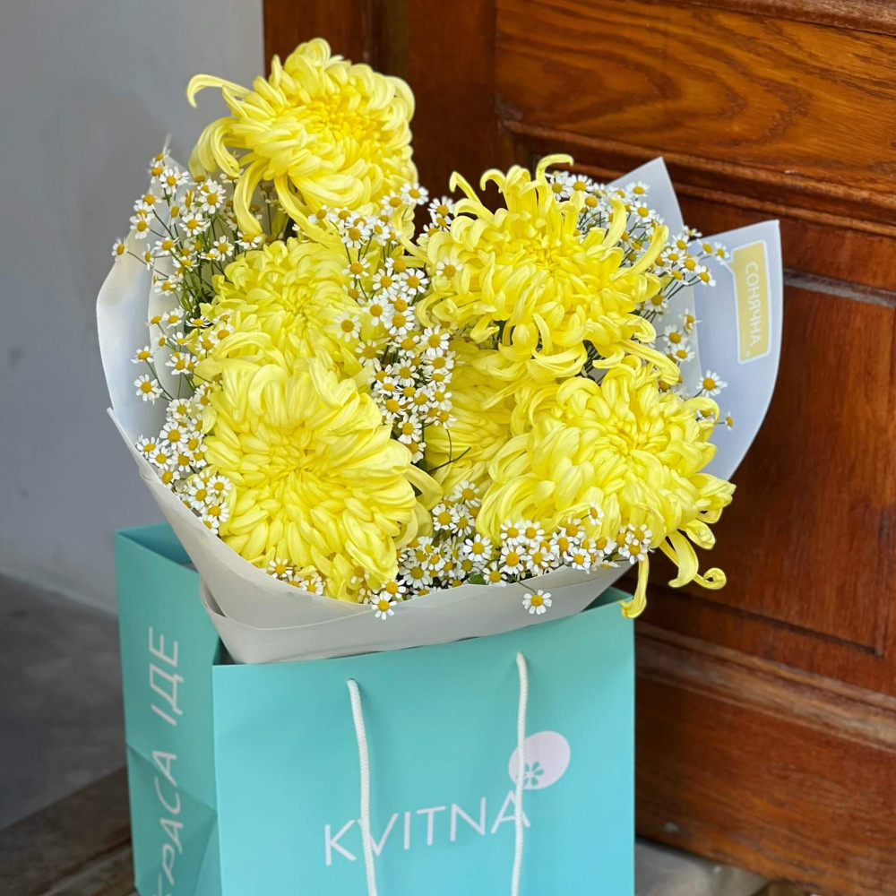 - Букеты от Kvitna доставляются в фирменной упаковке, которую нужно снять при установке цветов в вазу. Не срезайте ленту, связывающую букет, чтобы сохранить форму.