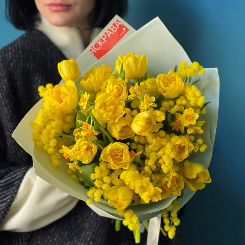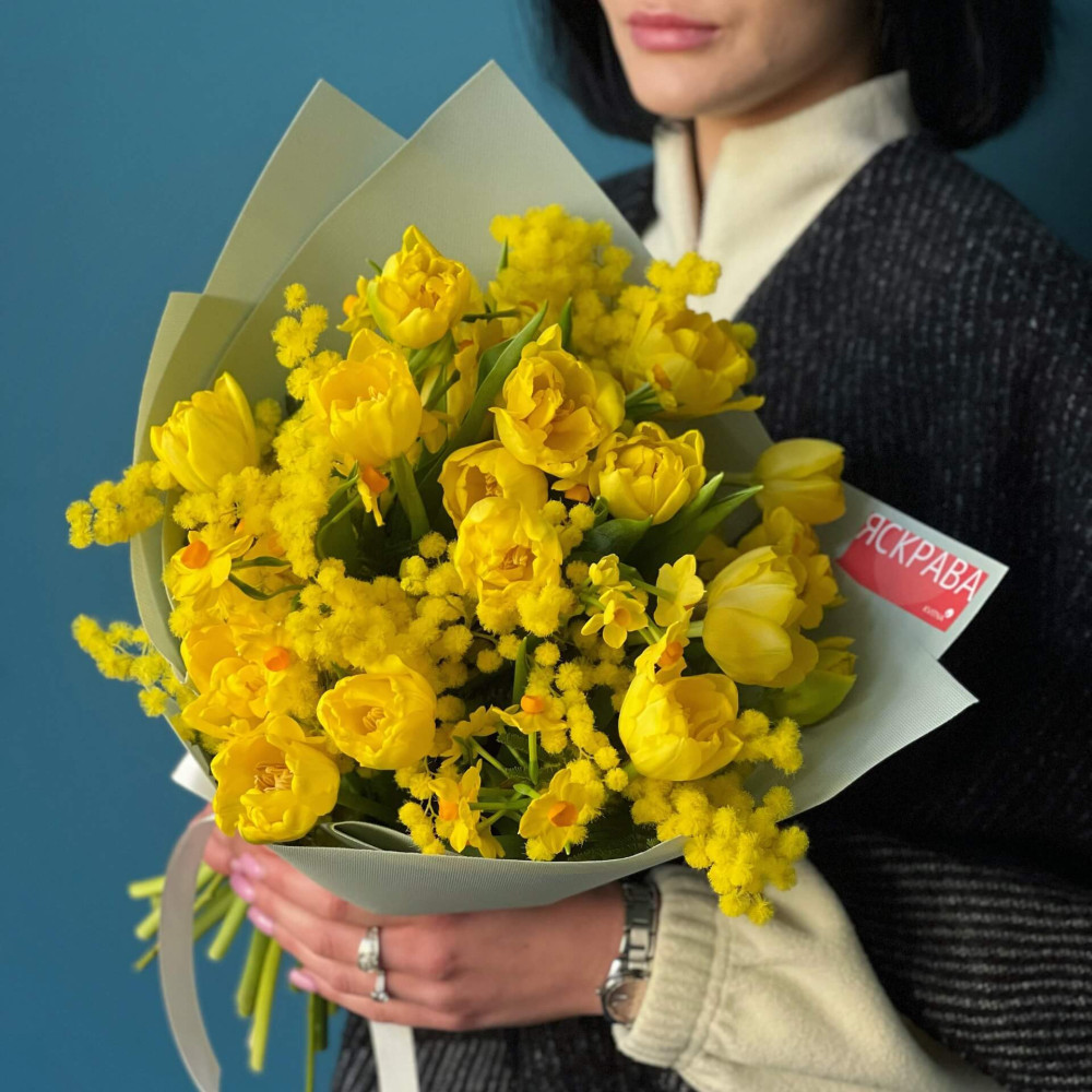 Цветы: Мимоза, Нарцисс, Тюльпан пионовидный