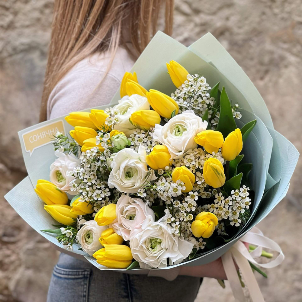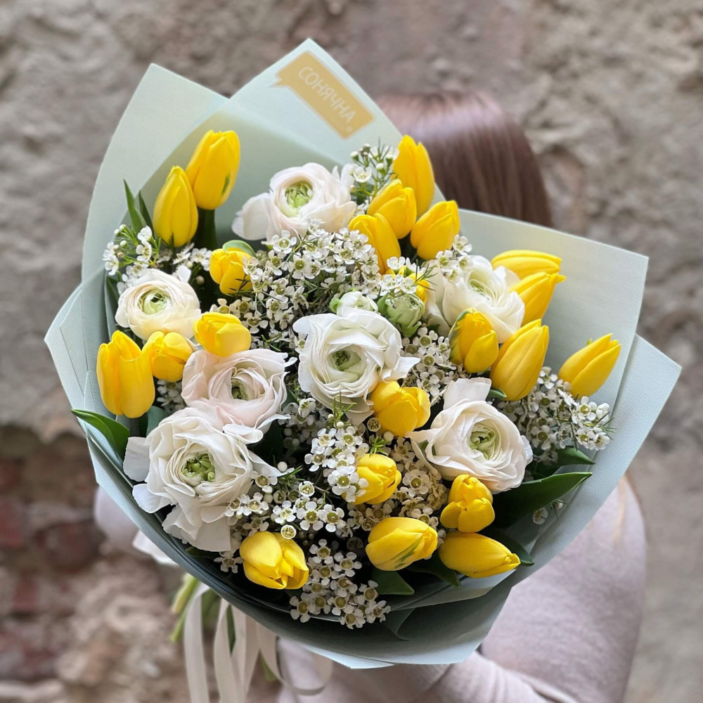 Цветы: Тюльпан, Хамелациум, Ранунклюс