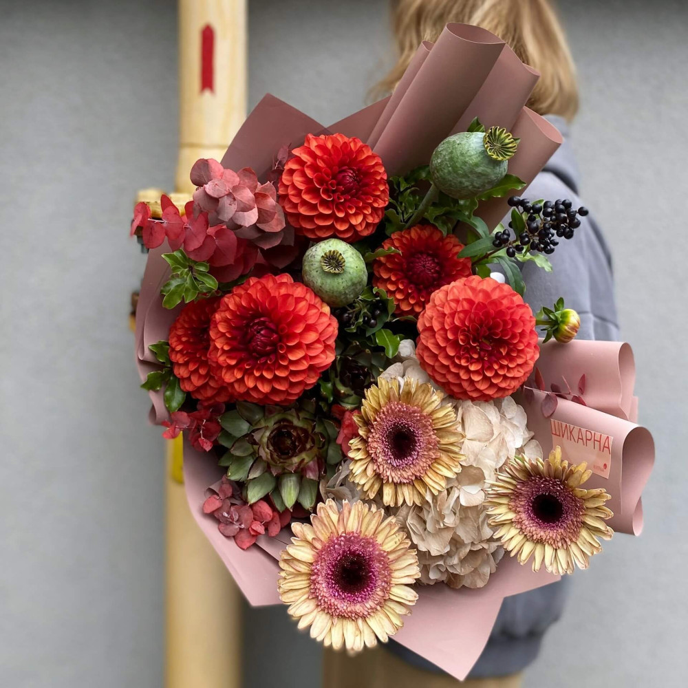 Залежно від сезонності і наявності квітів ми залишаємо за собою право змінювати склад букета без повідомлення замовника, зберігаючи при цьому авторський стиль, колірне рішення, концепцію букета. У разі, якщо необхідна заміна базової квітки, заміна відбувається з узгодженням із замовником. Якщо для Вас критично важлива присутність в складі певної квіточки – обов'язково зв'яжіться з нами та повідомте про це.