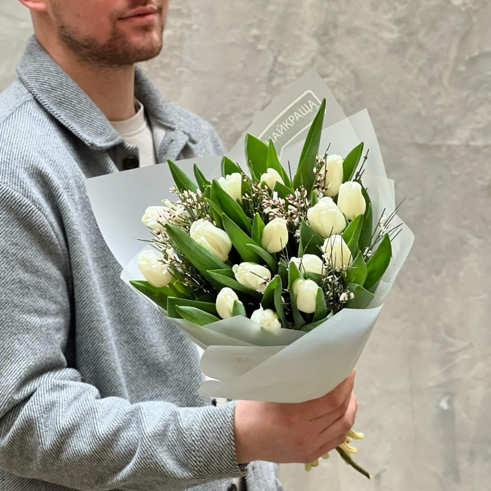 - Как заказать 15 тюльпанов и гениста в букете «Тюльпановый привет»? ❯