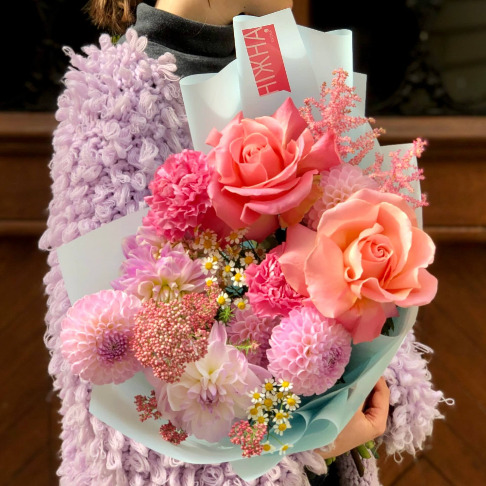 Цветы: Роза, Георгина, Диантус, Танацетум, Озотамнус, Астильба