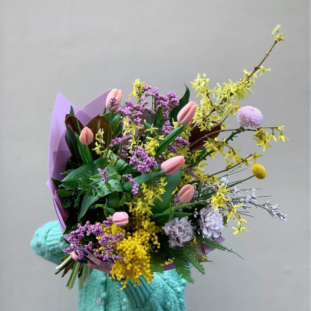 Цветы: Мимоза, Форзиция, Тюльпан, Диантус, Магнолия, Гениста, Хризантема