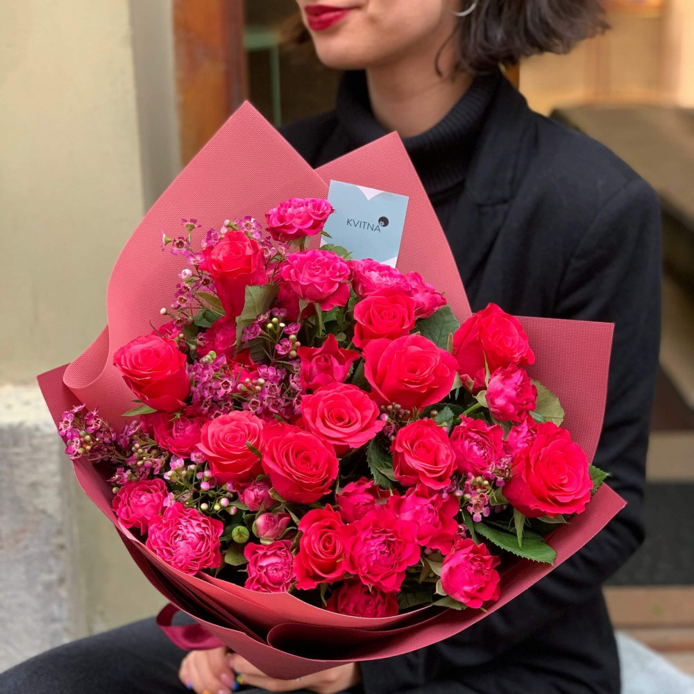 И это не обязательно плюсы, это особенности, которые нужно понимать. Тогда и выбор "где купить букет во Львове" - сделать будет значительно проще.- Каждый букет Kvitna - уникален. Это значит если Вы закажете у нас какой то из букетов на сайте - Вы не получите точно такой же. Некоторых это смущает, такие люди не хотят "рисковать", желают "в точности, как на картинке". У Квитна - каждый букет это творческий поиск, это увлечение, слияние с цветами, образом получателя и задачей. Да, мы можем принять за вектор, сделать похожий букет, в том же стиле, цветовой гамме, составу цветов... Но нам скучно делать по шаблону. Ведь букет, представленный на картинке - делался для другого человека, для другого повода, под другое настроение и вдохновение. У Вас будет все по-другому.