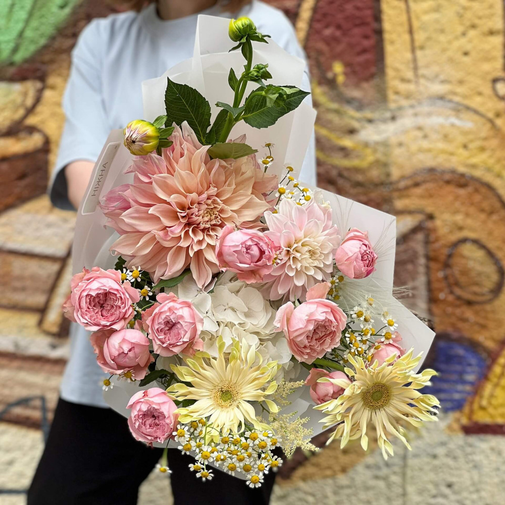 Залежно від сезонності і наявності квітів ми залишаємо за собою право змінювати склад букета без повідомлення замовника, зберігаючи при цьому авторський стиль, колірне рішення, концепцію букета. У разі, якщо необхідна заміна базової квітки, заміна відбувається з узгодженням із замовником. Якщо для Вас критично важлива присутність в складі певної квіточки – обов'язково зв'яжіться з нами та повідомте про це.