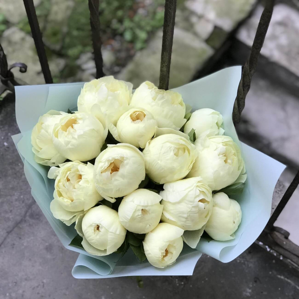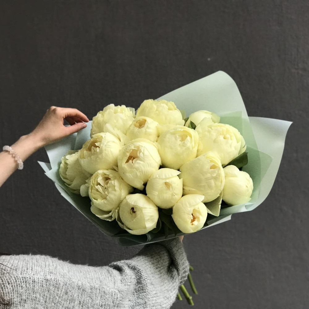 - Как заказать Букет из 15 сливочных пионов «Лимонный пломбир»? ❯