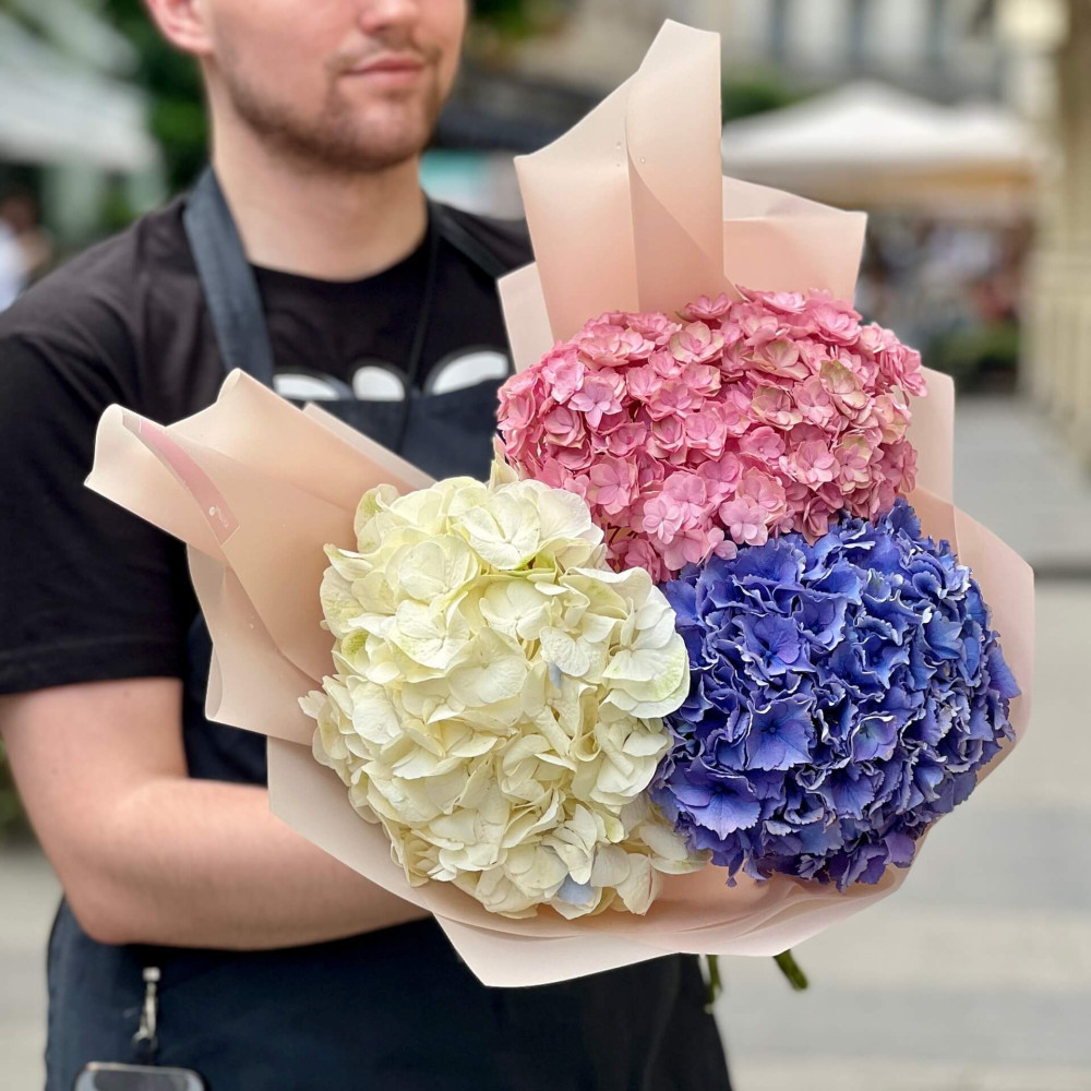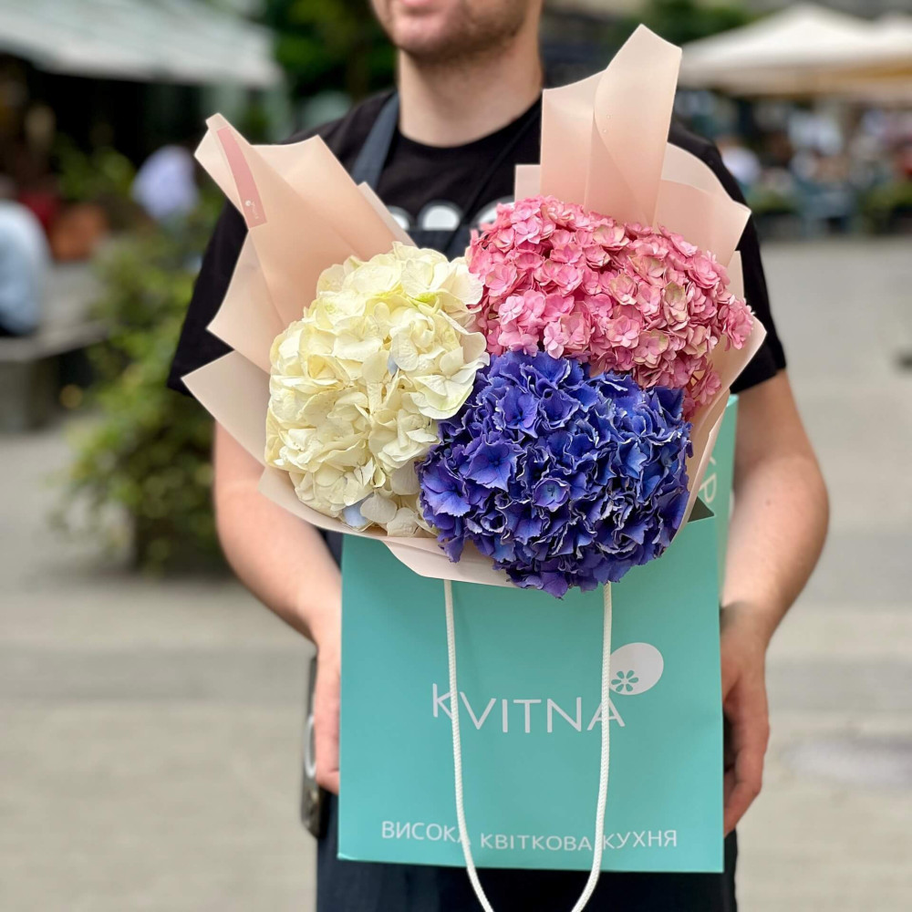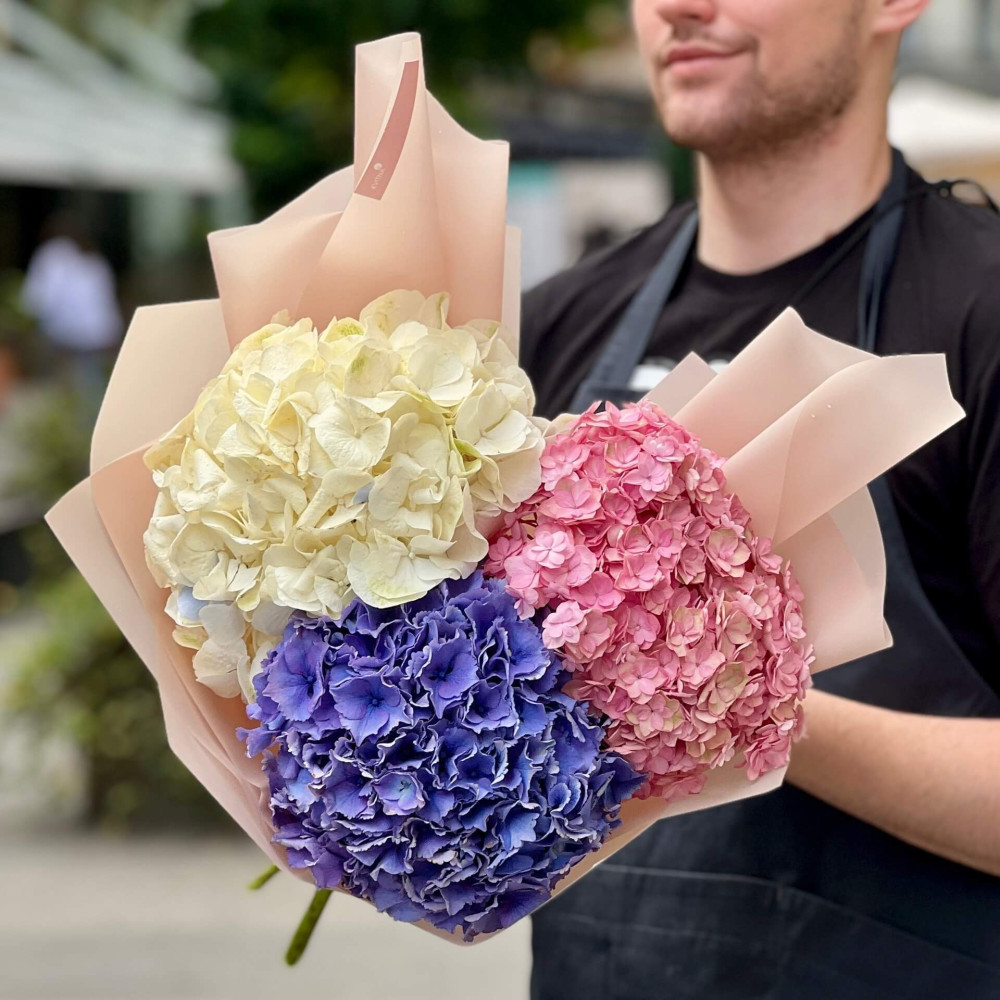 - Как заказать Букет из гортензий «Красочное трио»? ❯