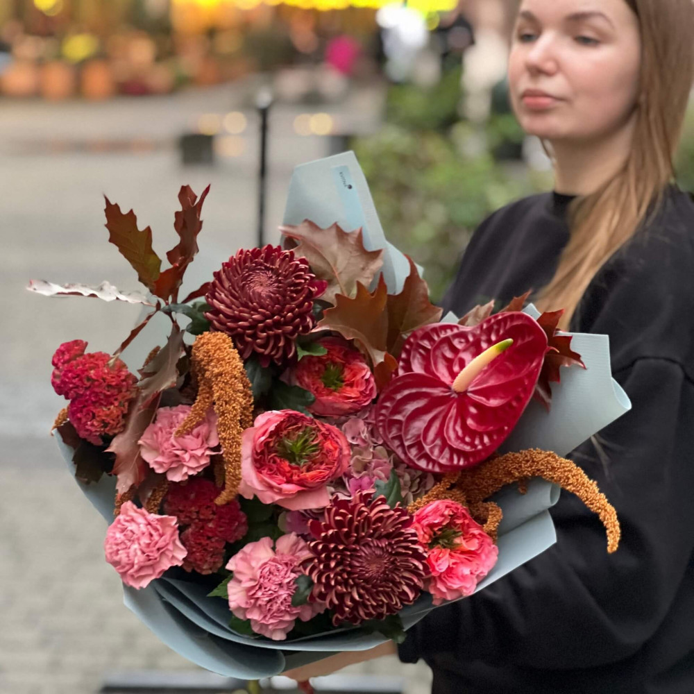 - Как заказать Букет с осенним настроением «Вспышка Бургунди»? ❯