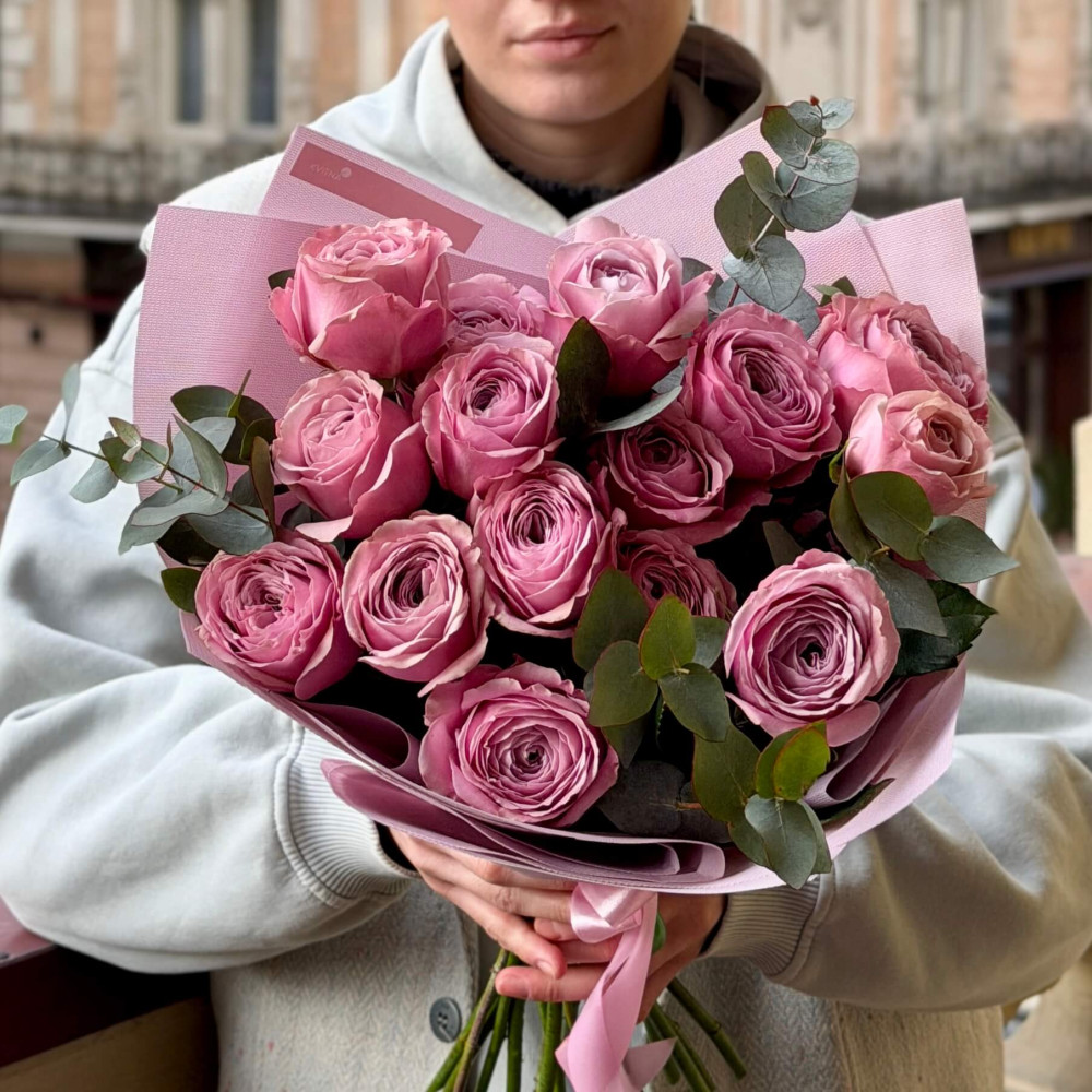 - Как заказать Букет из премиальной пионовидной розы Peony Kiss «Лавандовый зефир»? ❯