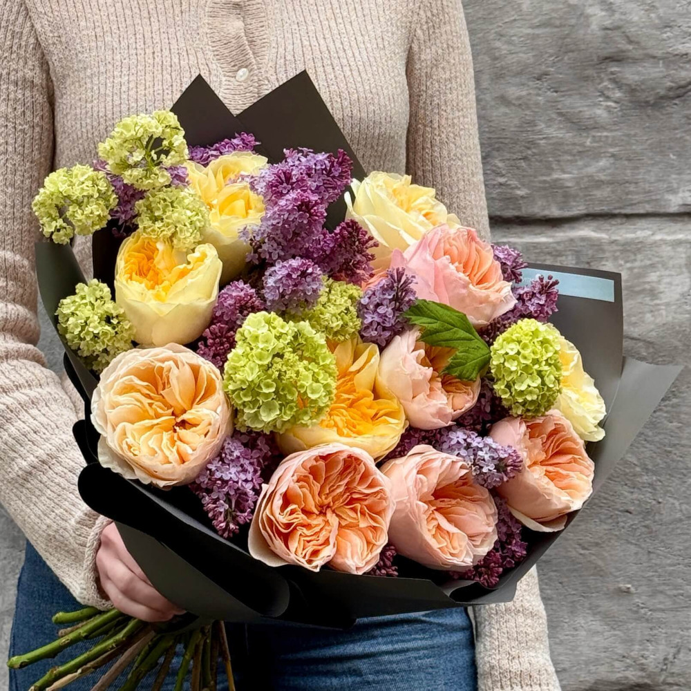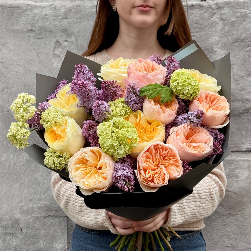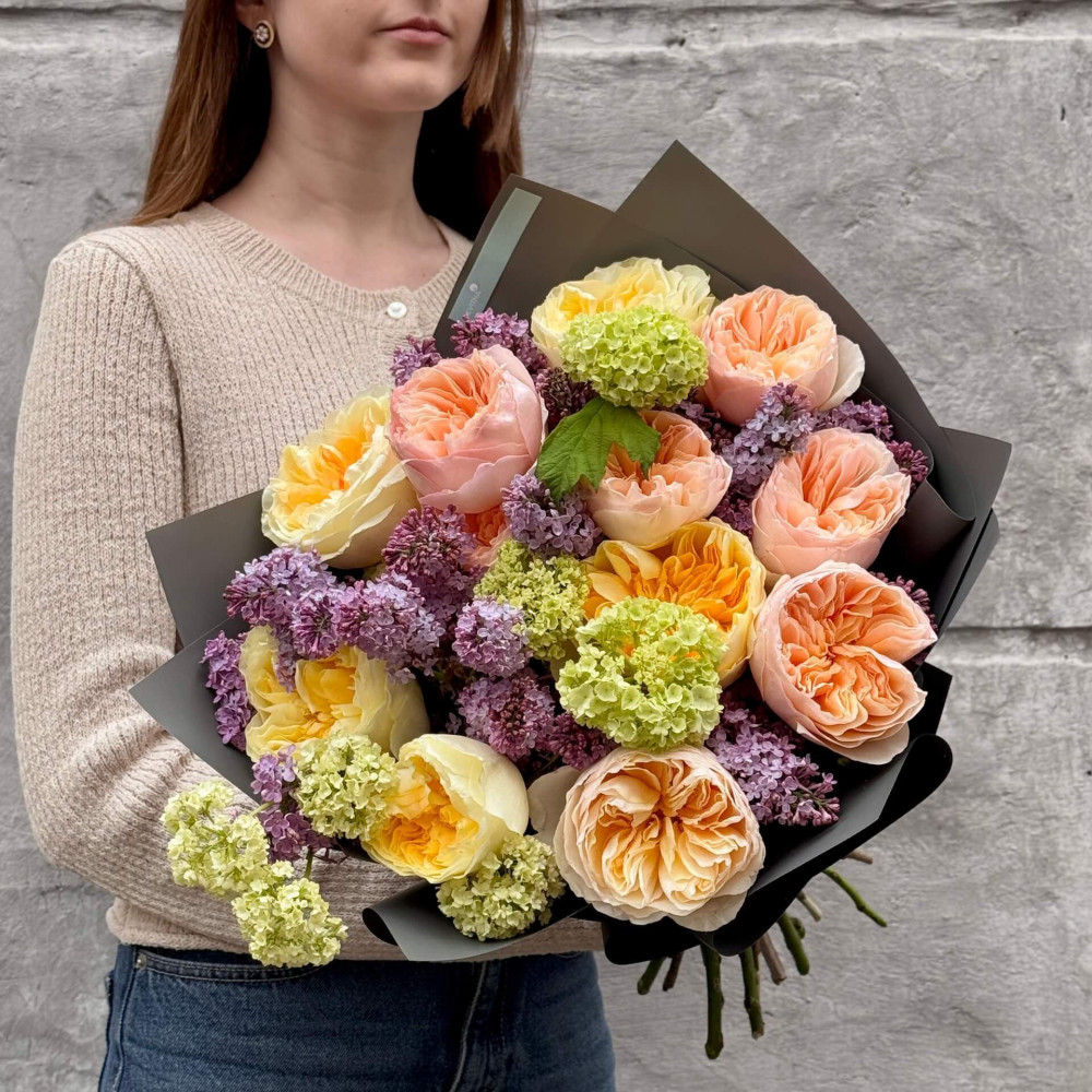 Цветы: Сирень, Роза пионовидная, Вибурнум