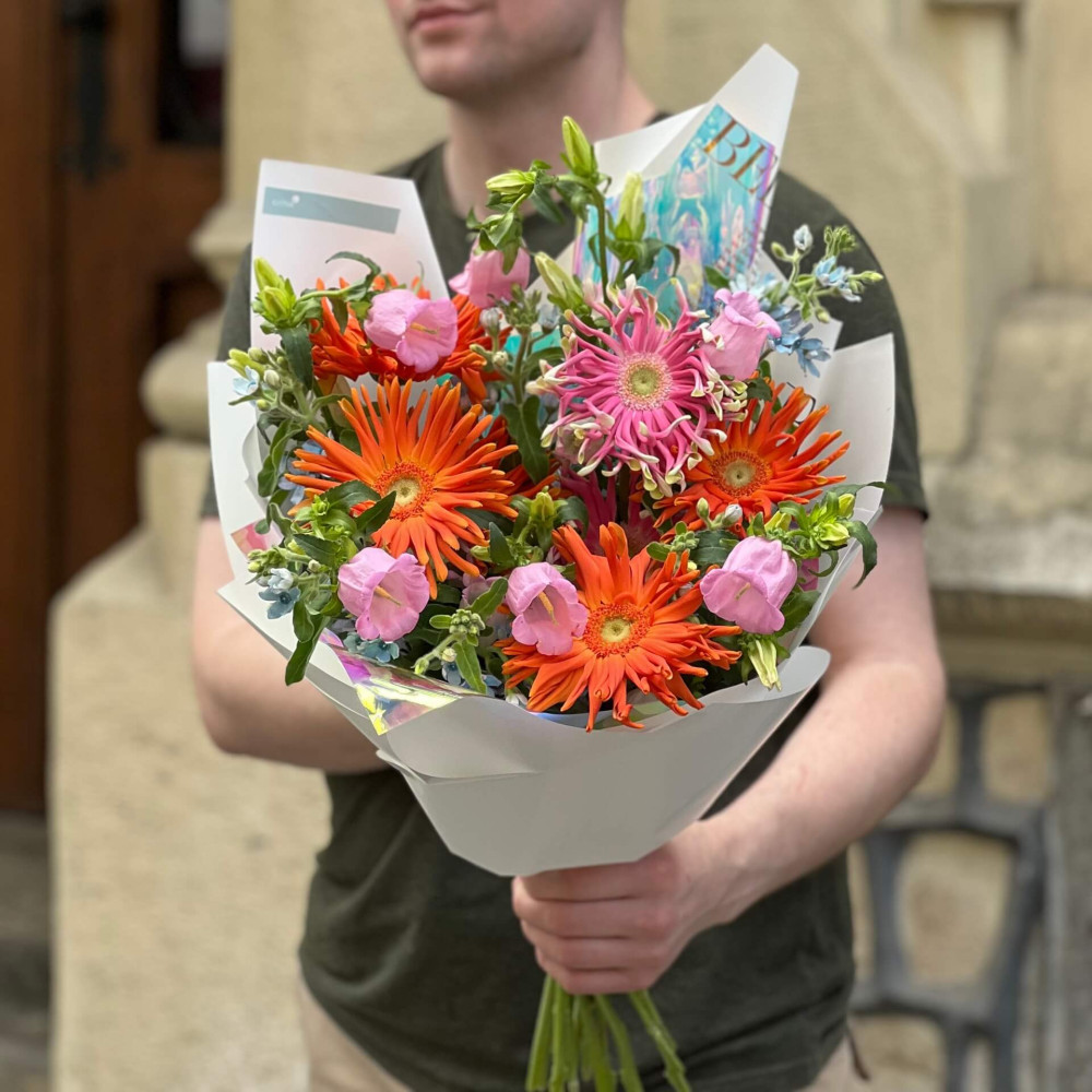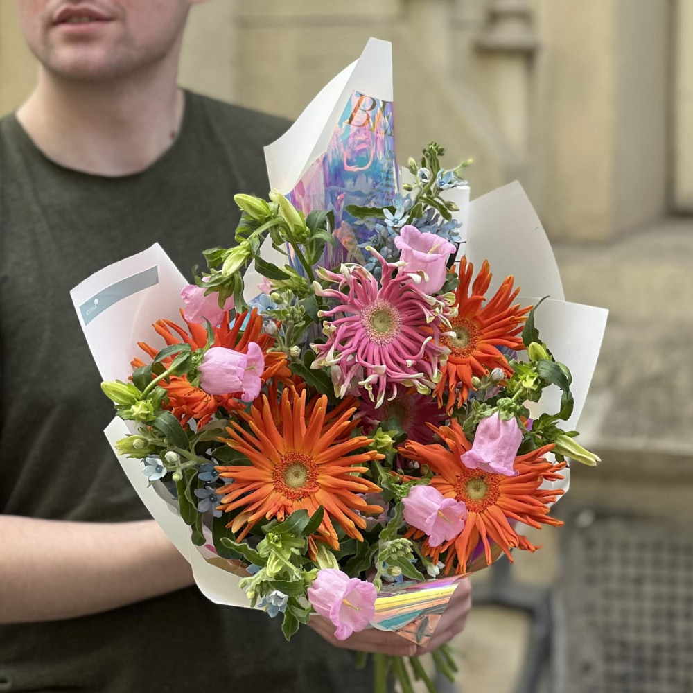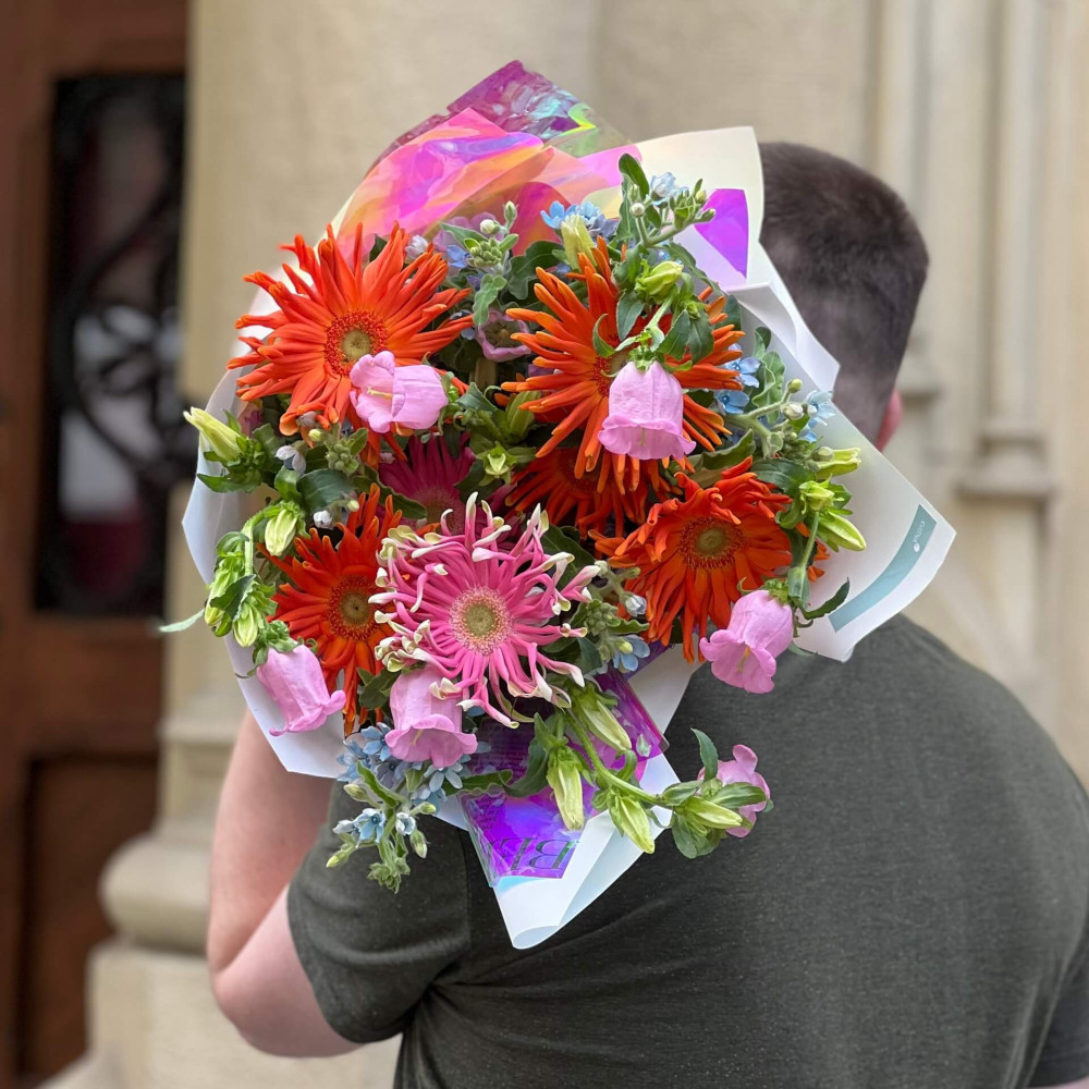 - Как заказать Яркий букет с герберами Pasta Marinara и Pasta Femke «Радужные мотыльки»? ❯