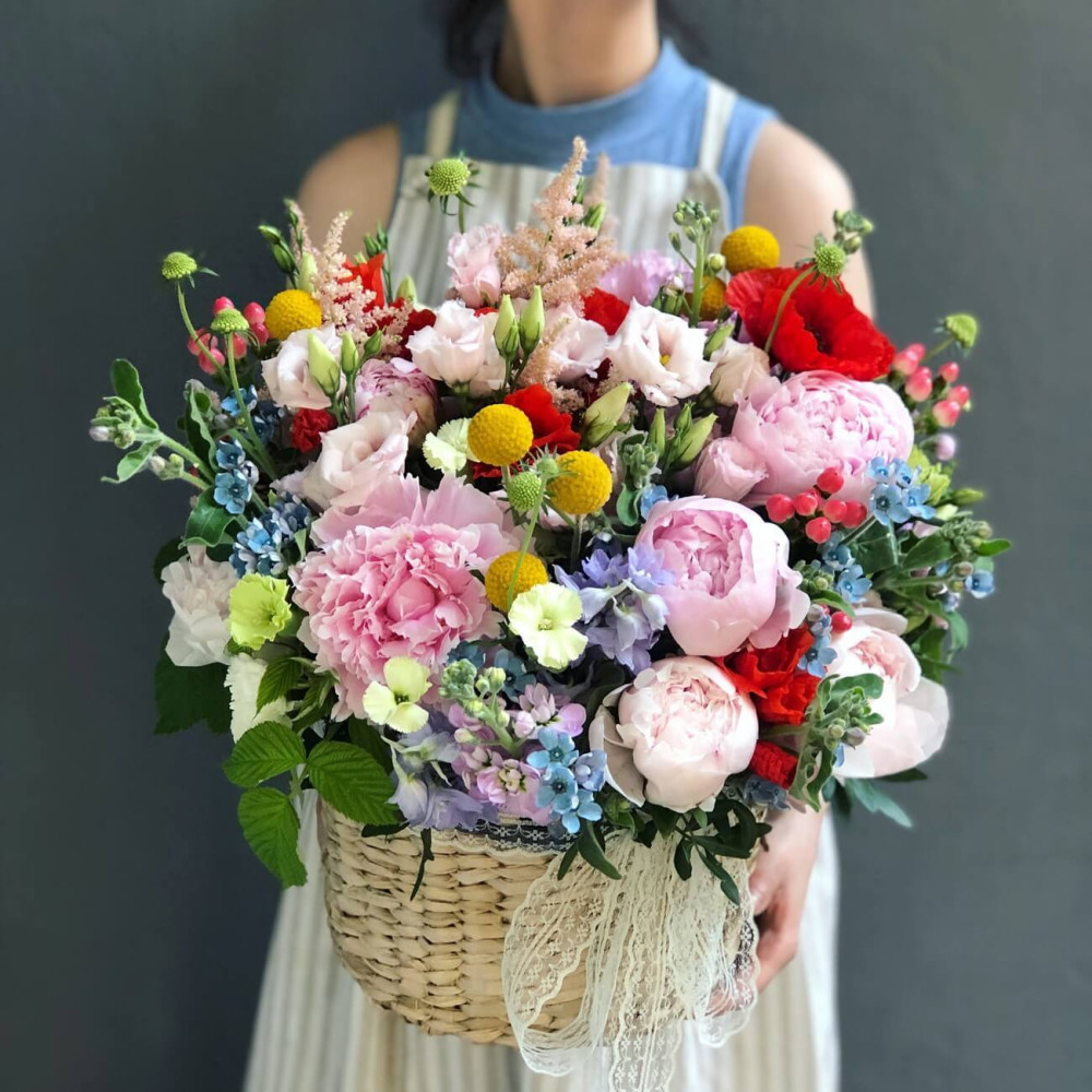 - Как заказать Корзина цветов «Поляна с маками»? ❯