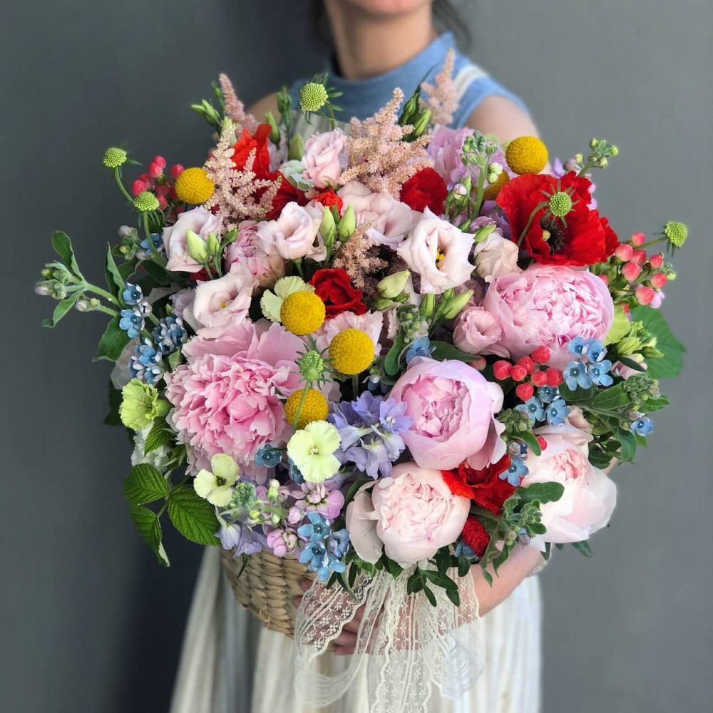 Роскошная корзина с летними полевыми цветами