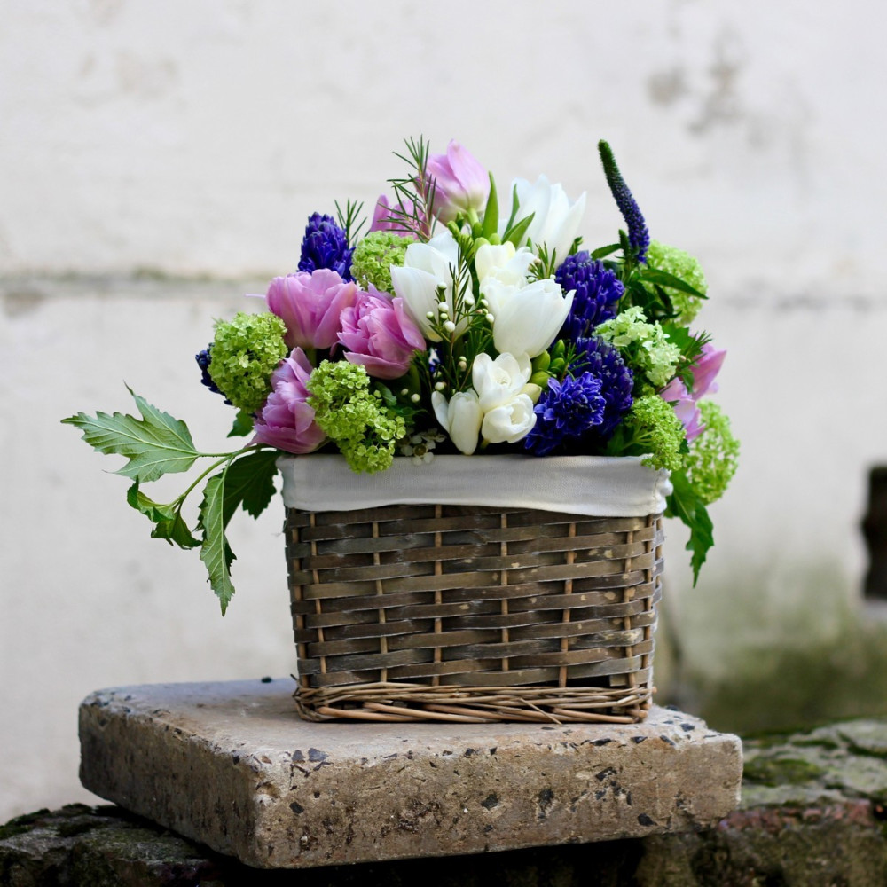 Корзина с синими гиацинтами
