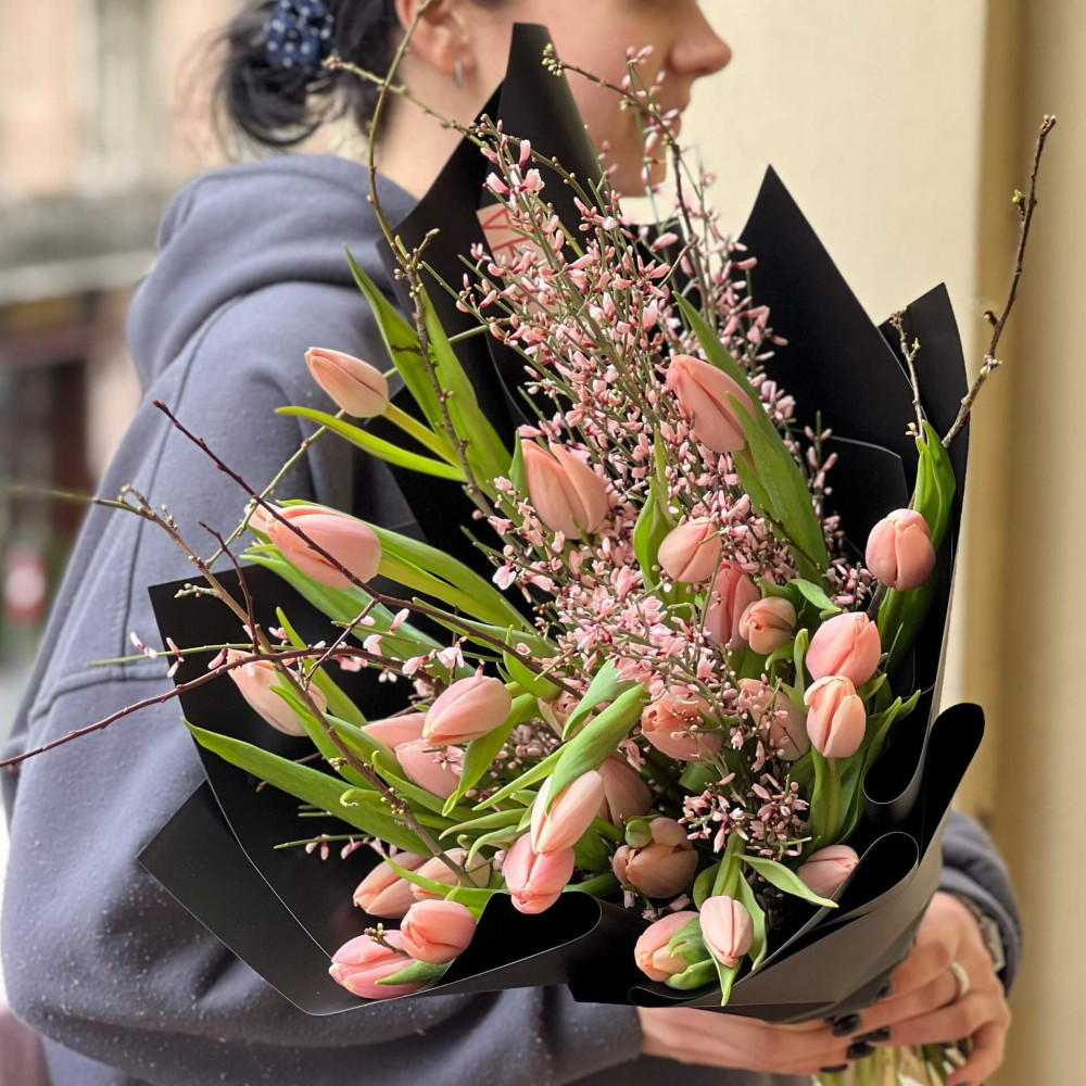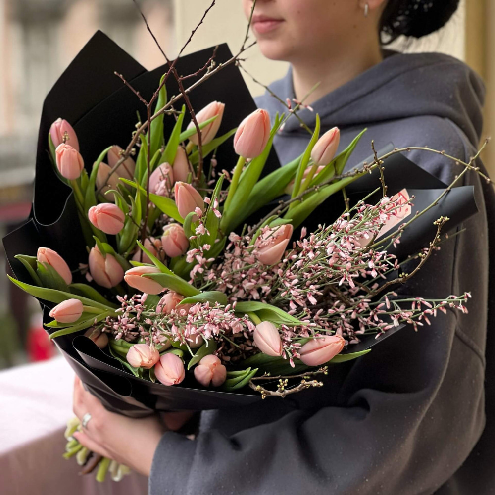 - Как заказать Лососевые тюльпаны в букете «Весенняя любовь»? ❯