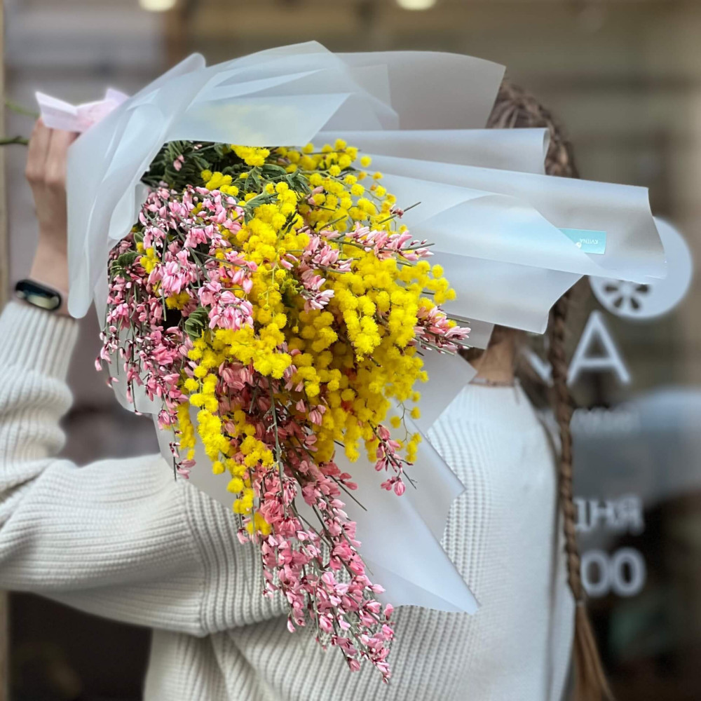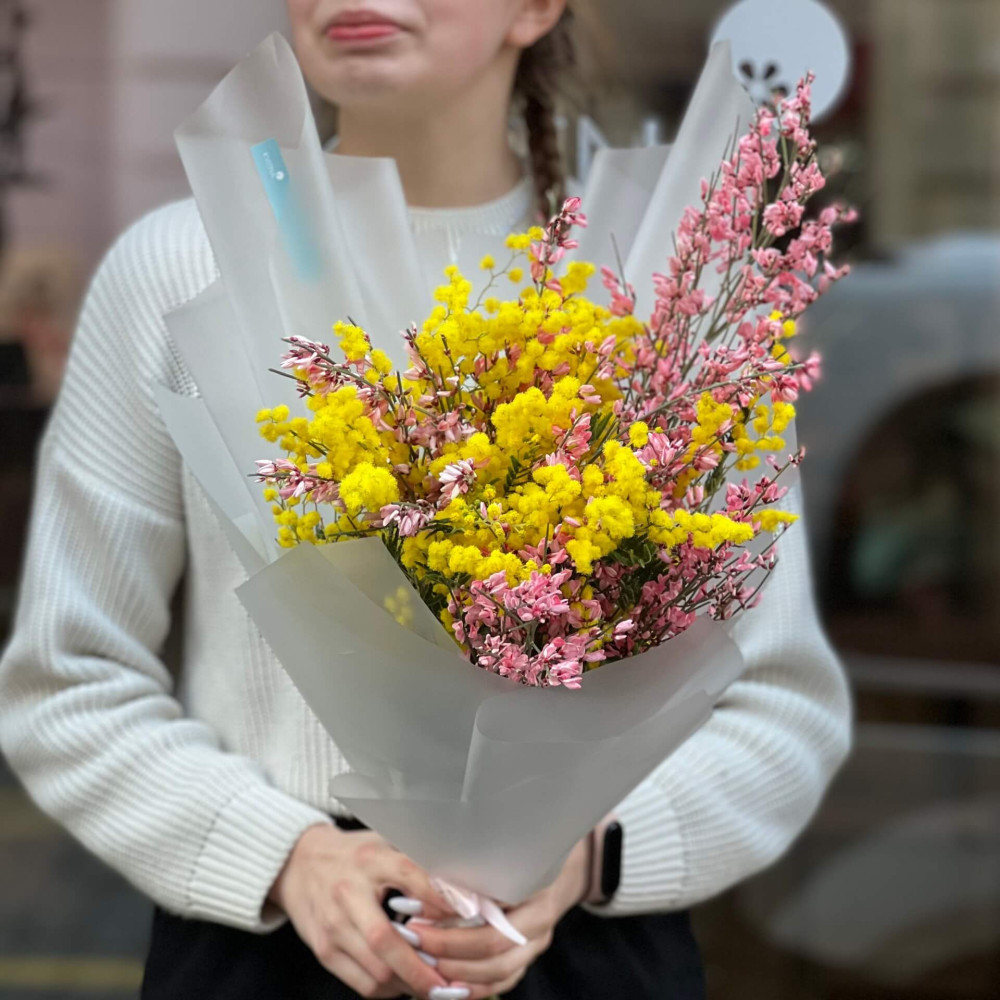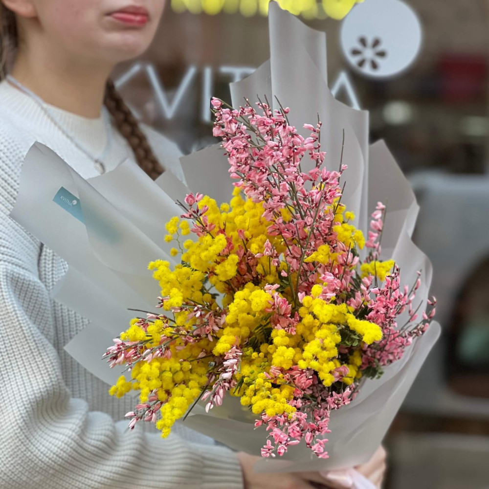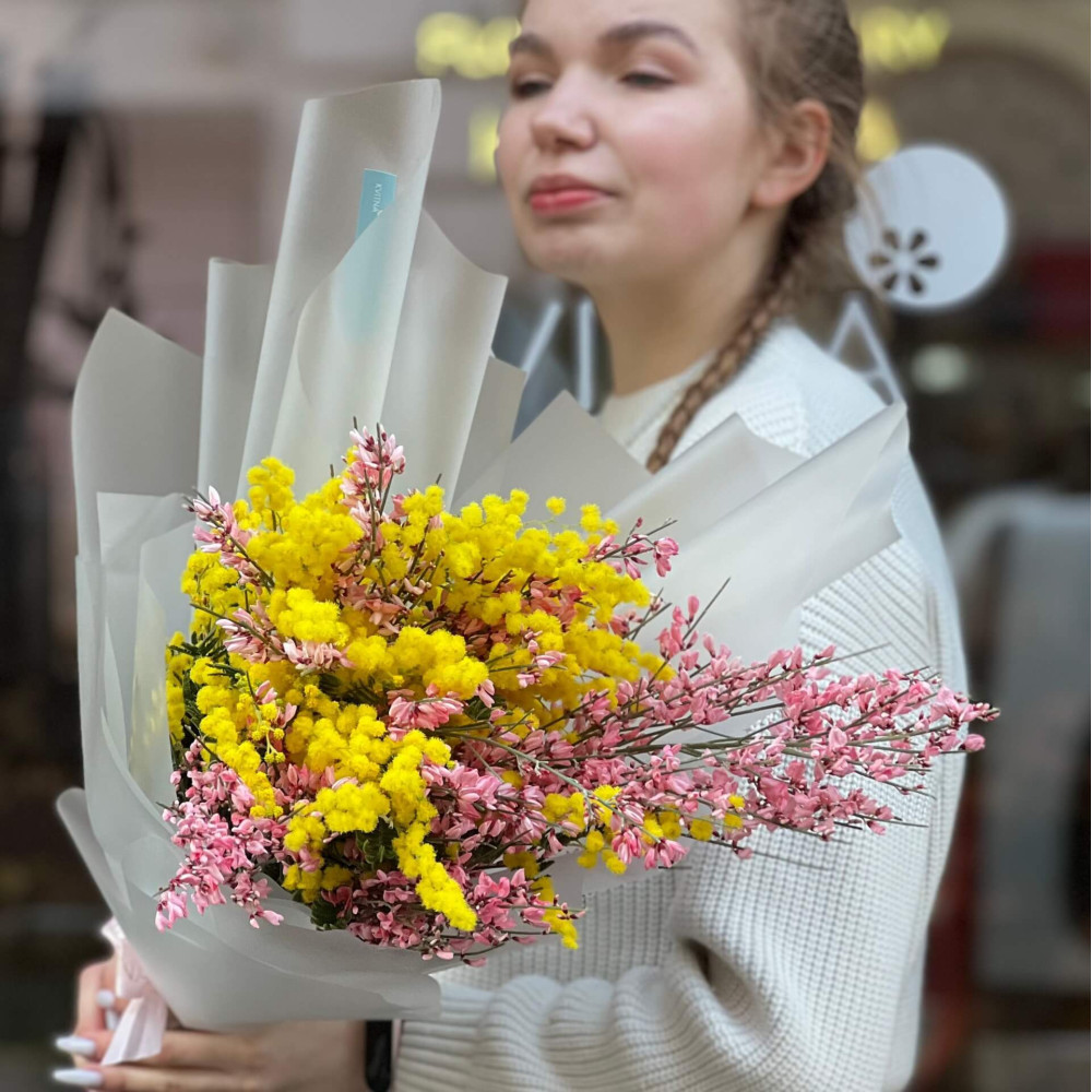 - Как заказать Милый ароматный букет из мимозы и генисты «Первое тепло»? ❯