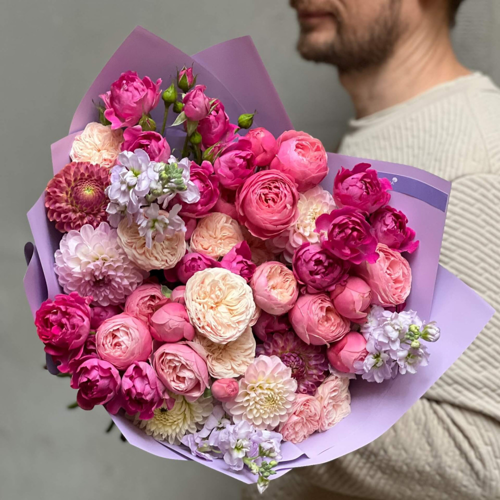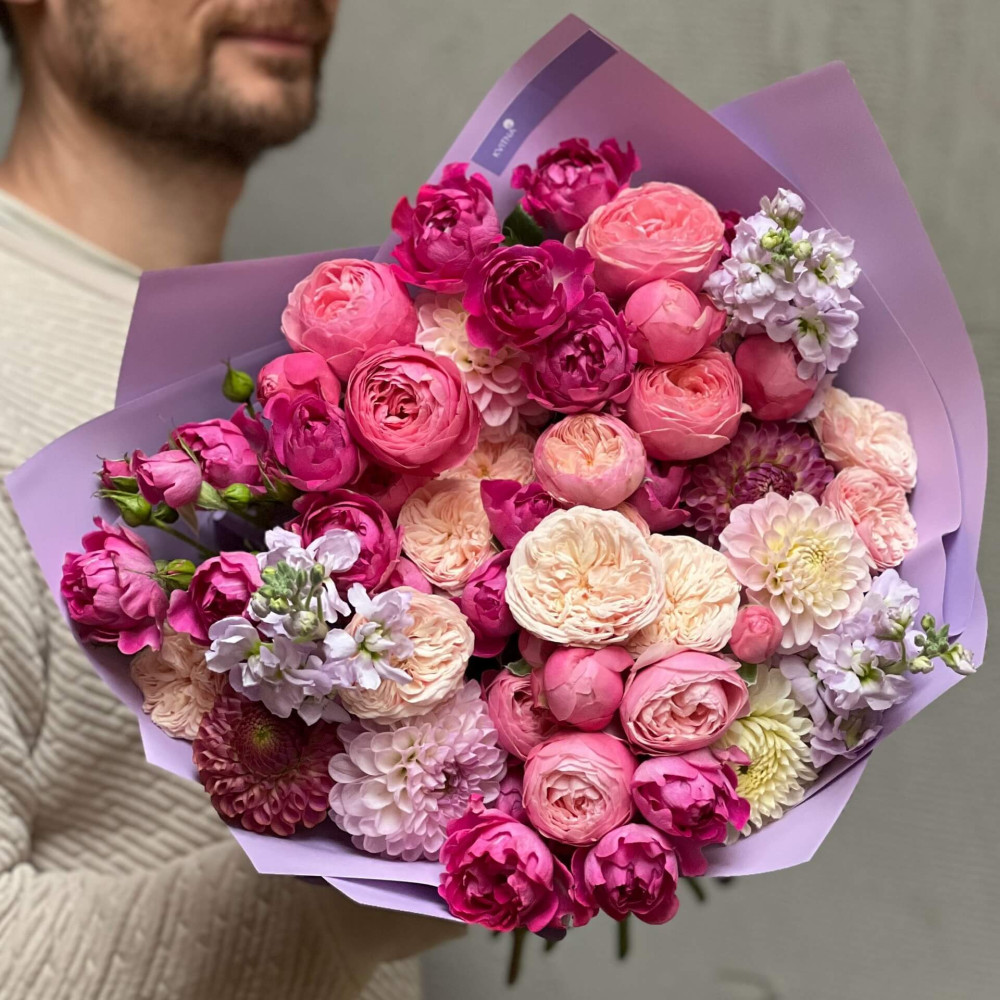 - Как заказать Мечтательный букет з пионовидными розами «Розовое желе»? ❯