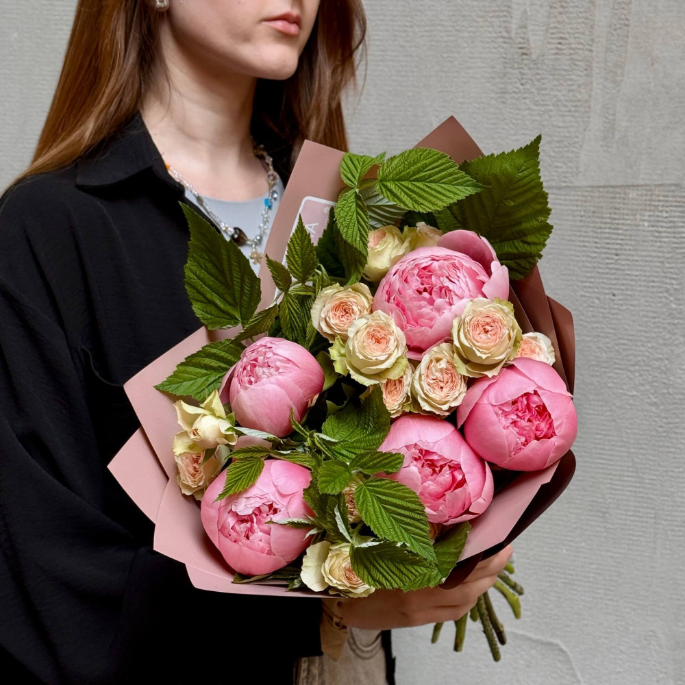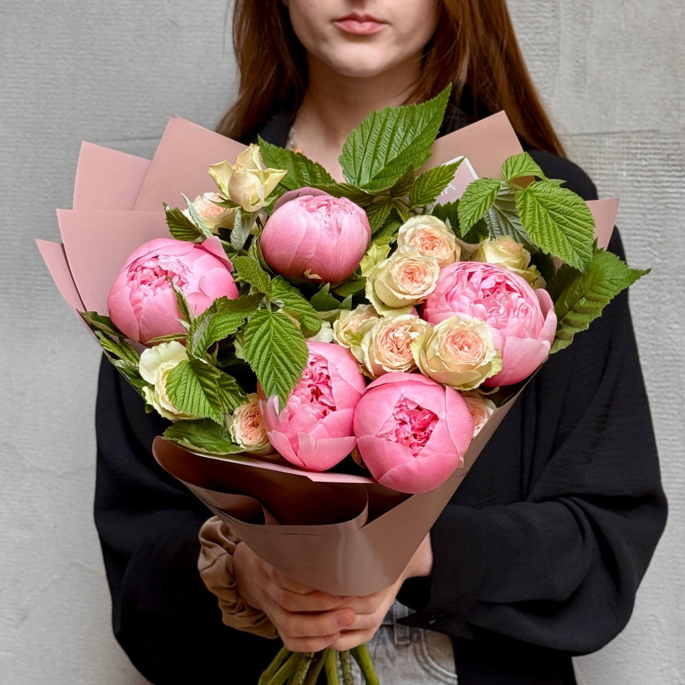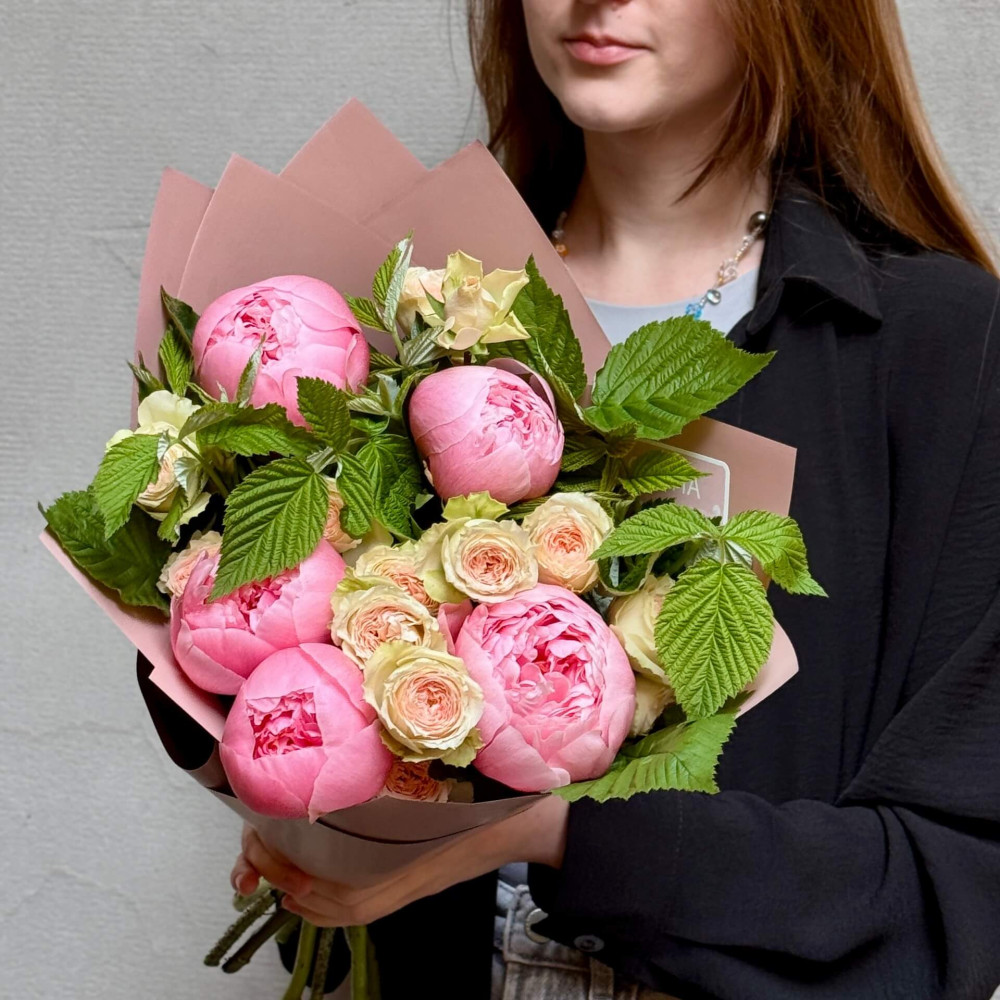 - Как заказать Милый букет с пионами Etched Salmon «Аромат клубники»? ❯