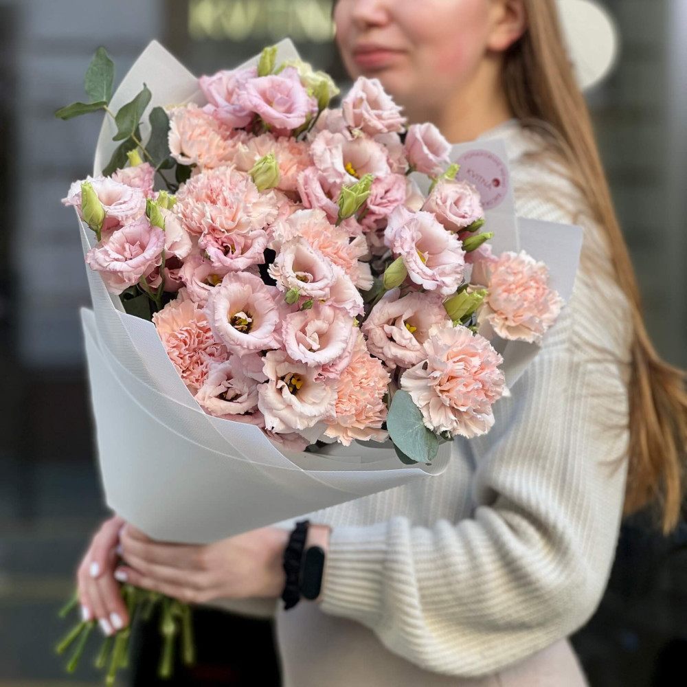 - Как заказать Нежный букет с эустомой и диантусом «Изысканный цветочек»? ❯