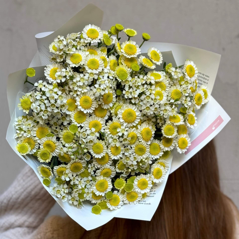 Цветы: Хризантема кустовая, Хамелациум