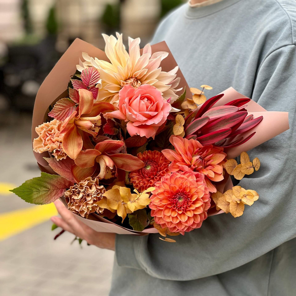 Залежно від сезонності і наявності квітів ми залишаємо за собою право змінювати склад букета без повідомлення замовника, зберігаючи при цьому авторський стиль, колірне рішення, концепцію букета. У разі, якщо необхідна заміна базової квітки, заміна відбувається з узгодженням із замовником. Якщо для Вас критично важлива присутність в складі певної квіточки – обов'язково зв'яжіться з нами та повідомте про це.