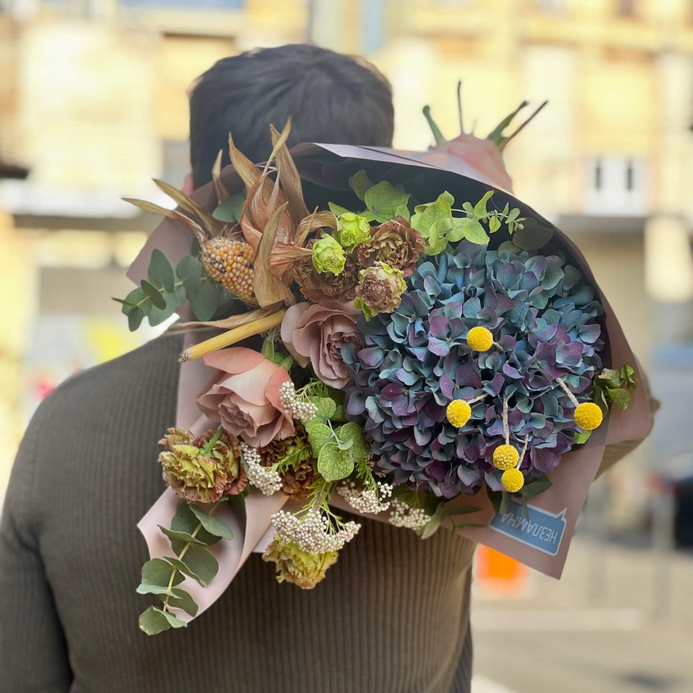 - Как заказать Осенний букет с гортензией «Октябрьское настроение»? ❯