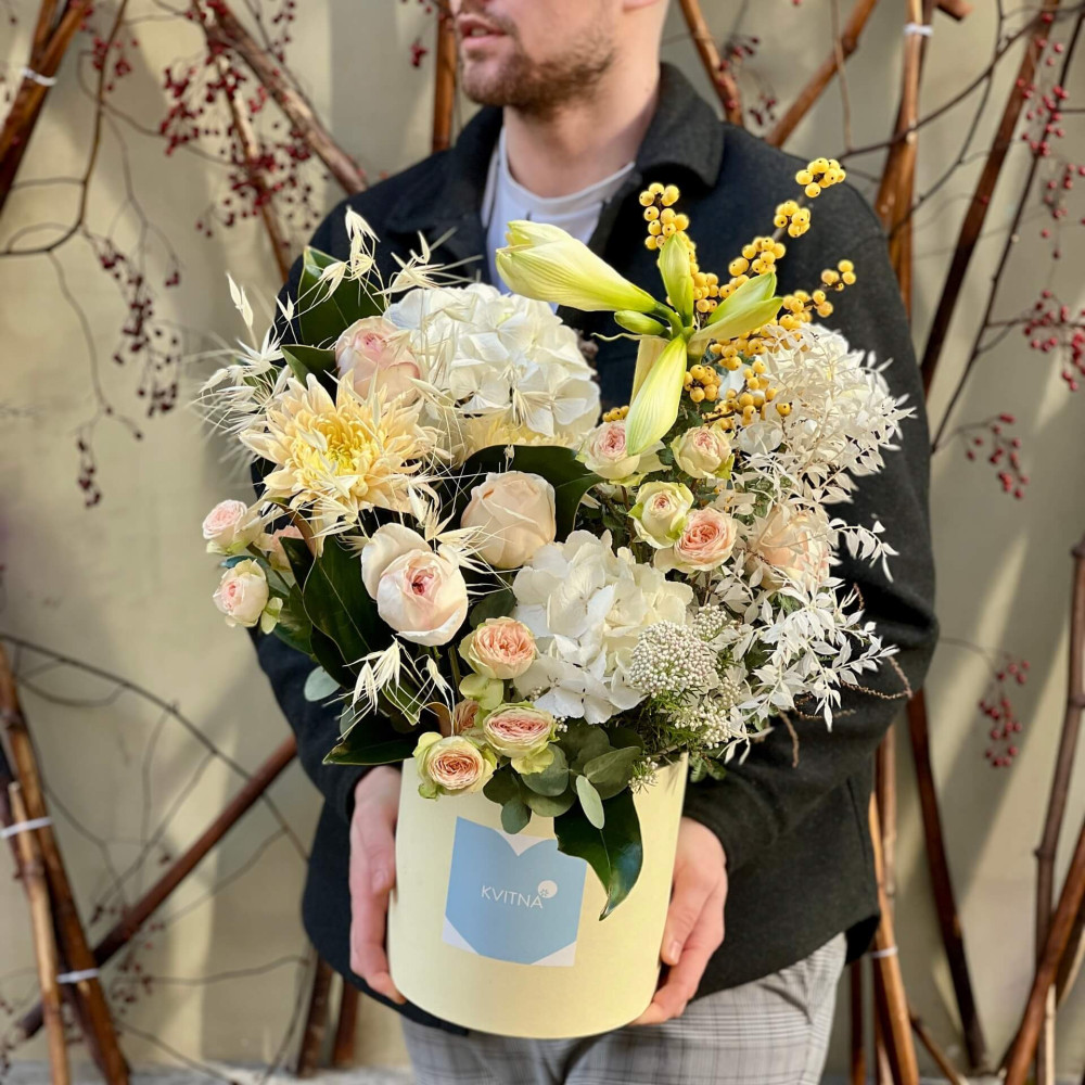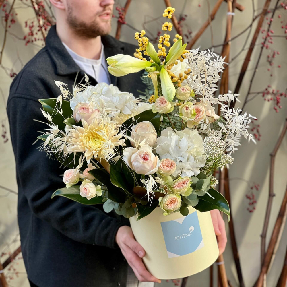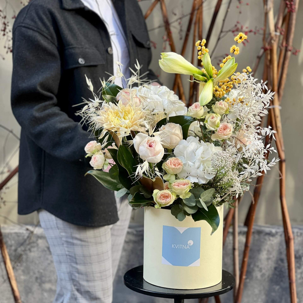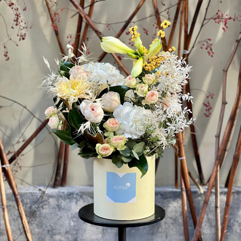 Пусть композиция (коробка, корзина, сноп) с цветами от Квитна радует Вас как можно дольше!