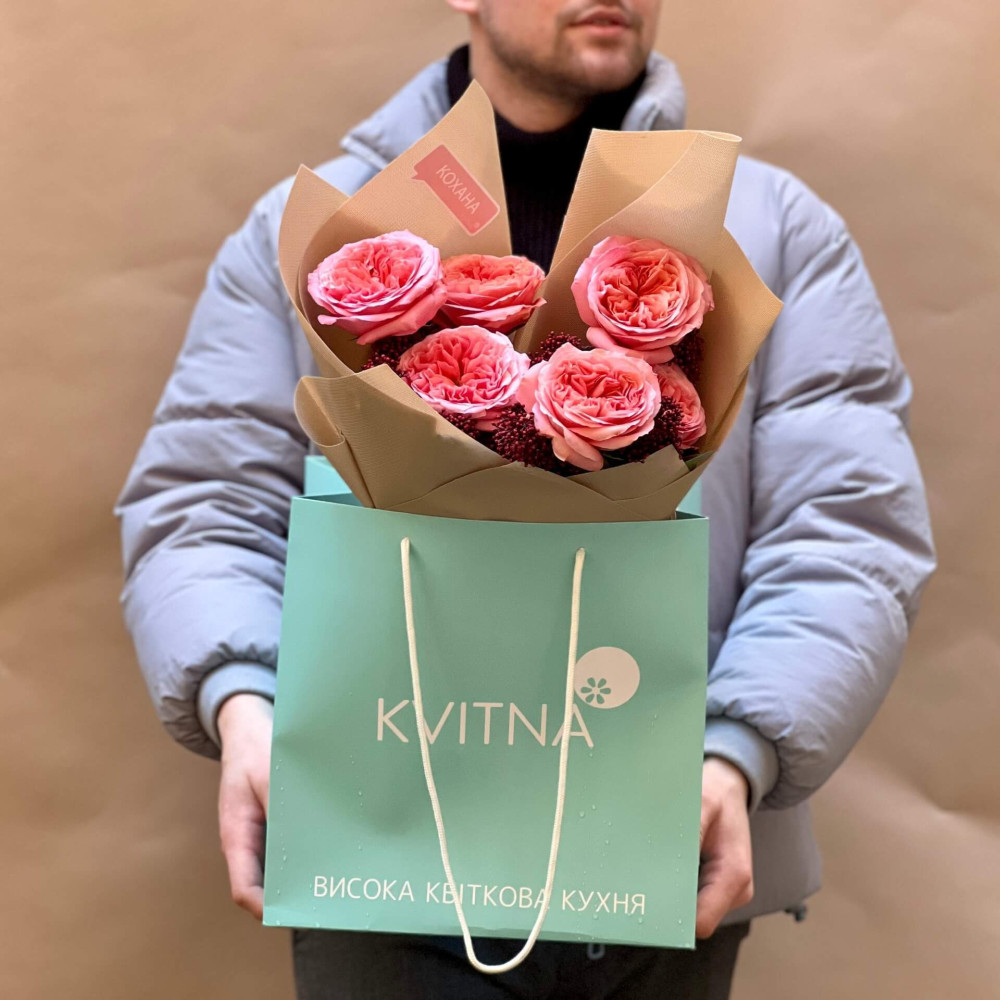 - Букеты от Kvitna доставляются в фирменной упаковке, которую нужно снять при установке цветов в вазу. Не срезайте ленту, связывающую букет, чтобы сохранить форму.