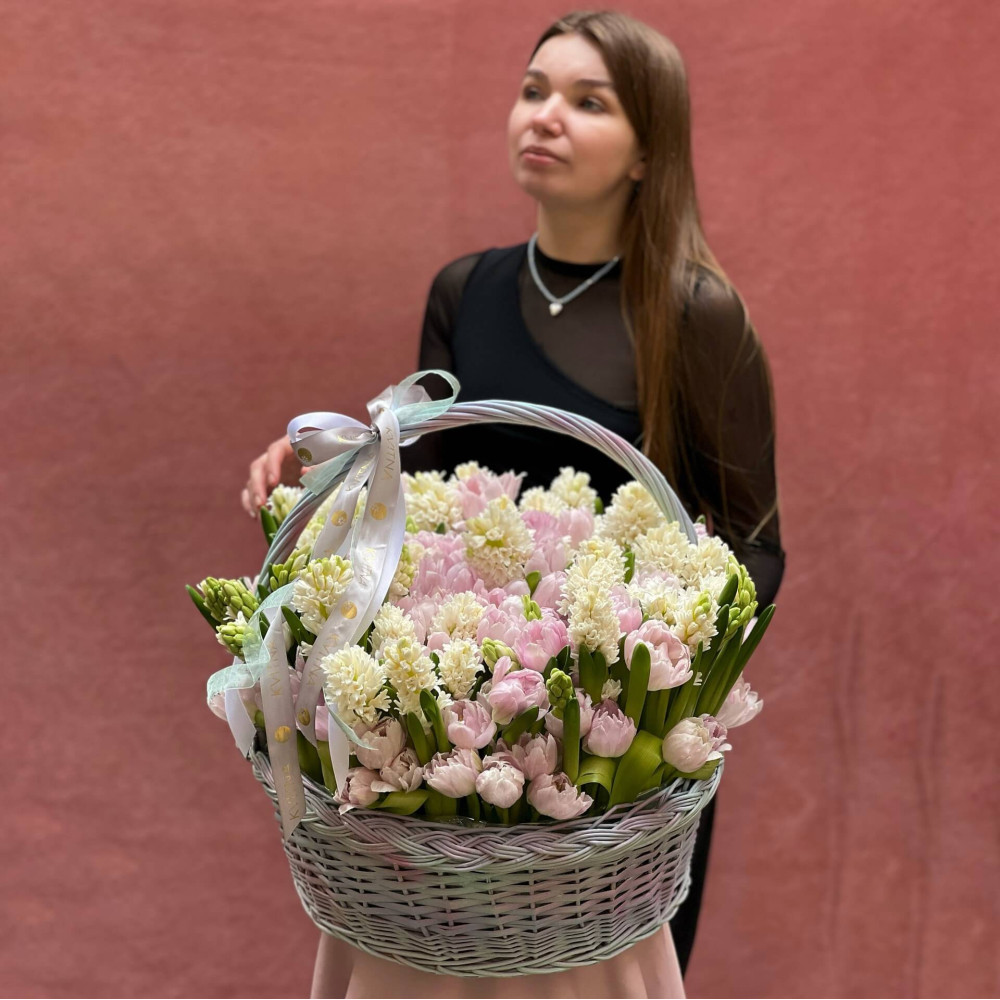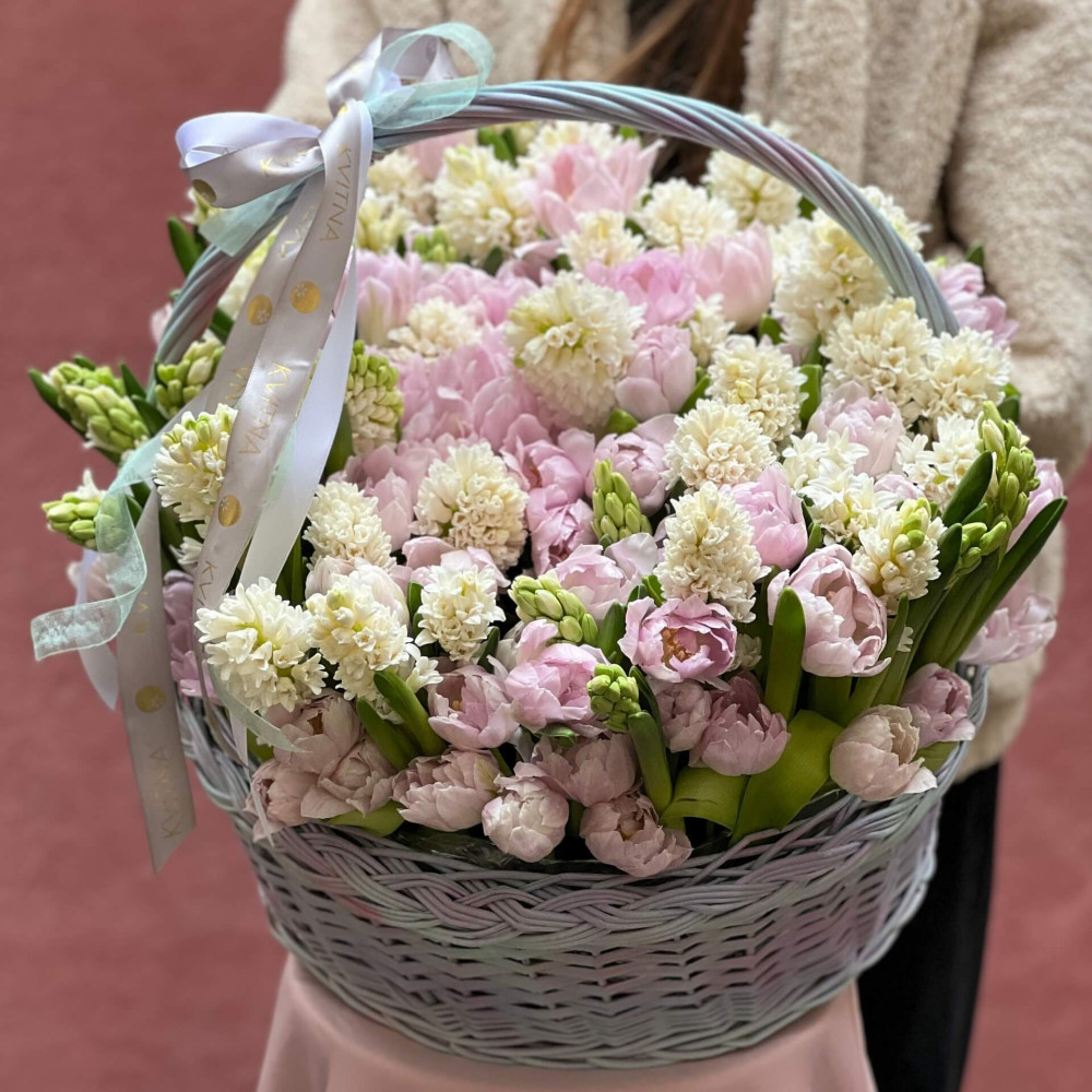 - Как заказать Роскошный ароматная корзина с гиацинтами и пионовидными тюльпанами «Утончённая гармония»? ❯